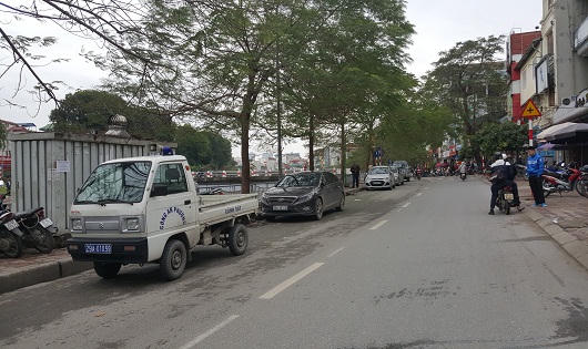 | Đối diện với Đội Thanh tra Giao thông quận Thanh Xuân cũng có vài chục chiếc xe đỗ sai phạm ở vỉa hè, lòng đường nhưng không ai xử lý. |