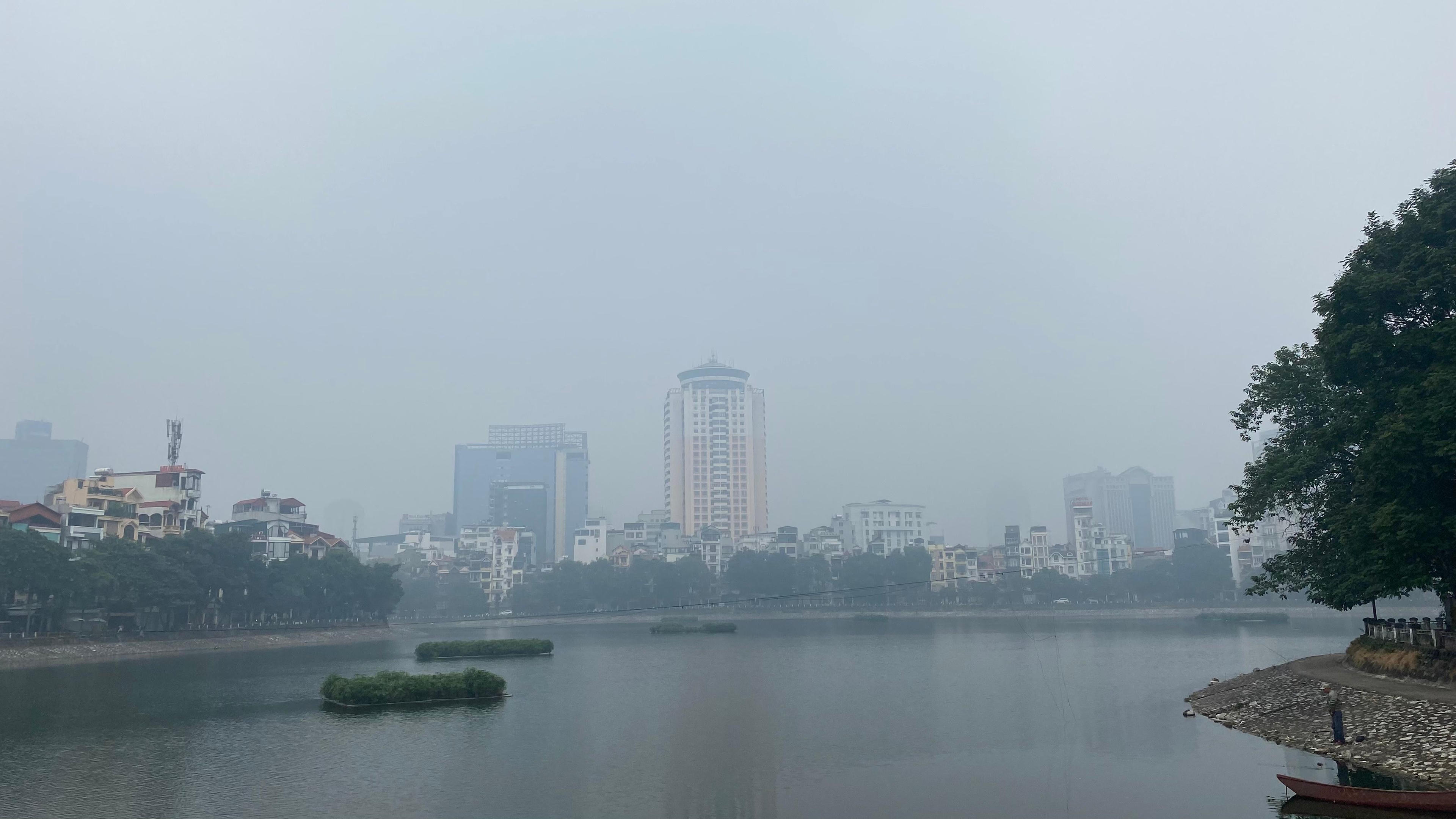 Hơn 14h hôm nay, lớp sương mù vẫn bao phủ khu vực nội thành Hà Nội. Hiện tượng này đã xuất hiện từ sáng. |