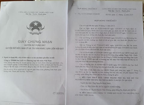 Ngày 3/12/2019 Sở TNMT TP Hà Nội và công ty chúng tôi (tức – Công ty TNHH sản xuất và thương mại sắc màu Việt Nam) ký hợp đồng thuê đất số 494/HĐTĐ-STNMT-CCQLĐĐ đến ngày 2/02/2055 để cho công ty chúng tôi làm cơ sở để sản xuất khung nhà thép.
