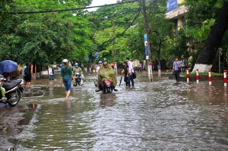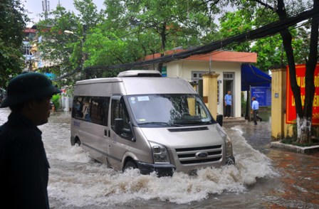 Tuyến phố Trần Bình là một trong những “điểm đen” thường xuyên bị ngập úng của Hà Nội.