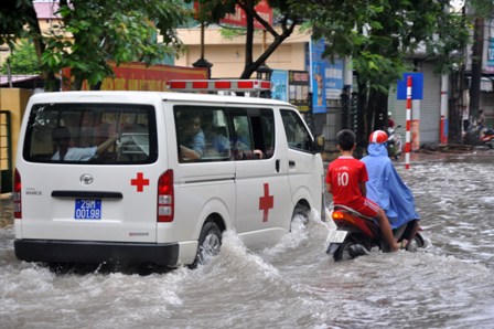 Phố Trần Bình là đường vào Bệnh viện 198, từ xe cấp cứu tới bệnh nhân đều phải “gồng mình” qua các điểm ngập úng sâu mỗi khi mưa lớn.