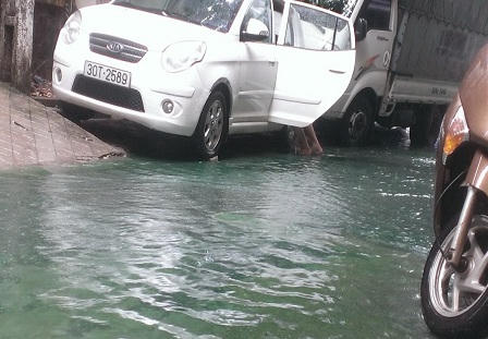 Đến trưa 22/9, dù mưa ngớt nhưng nước rút chậm. Với tổng lượng mưa hơn 200 mm, Công ty thoát nước Hà Nội cho biết, việc tiêu thoát sẽ cần thời gian và phụ thuộc từng vị trí khác nhau.
