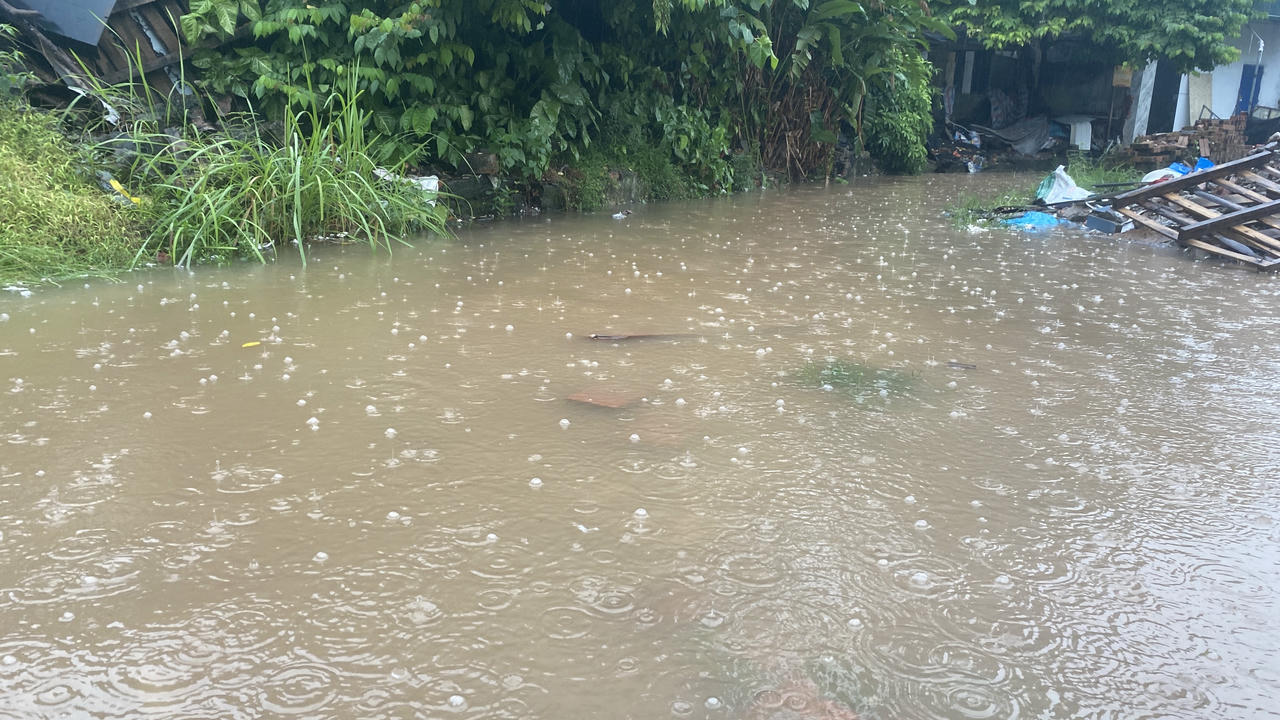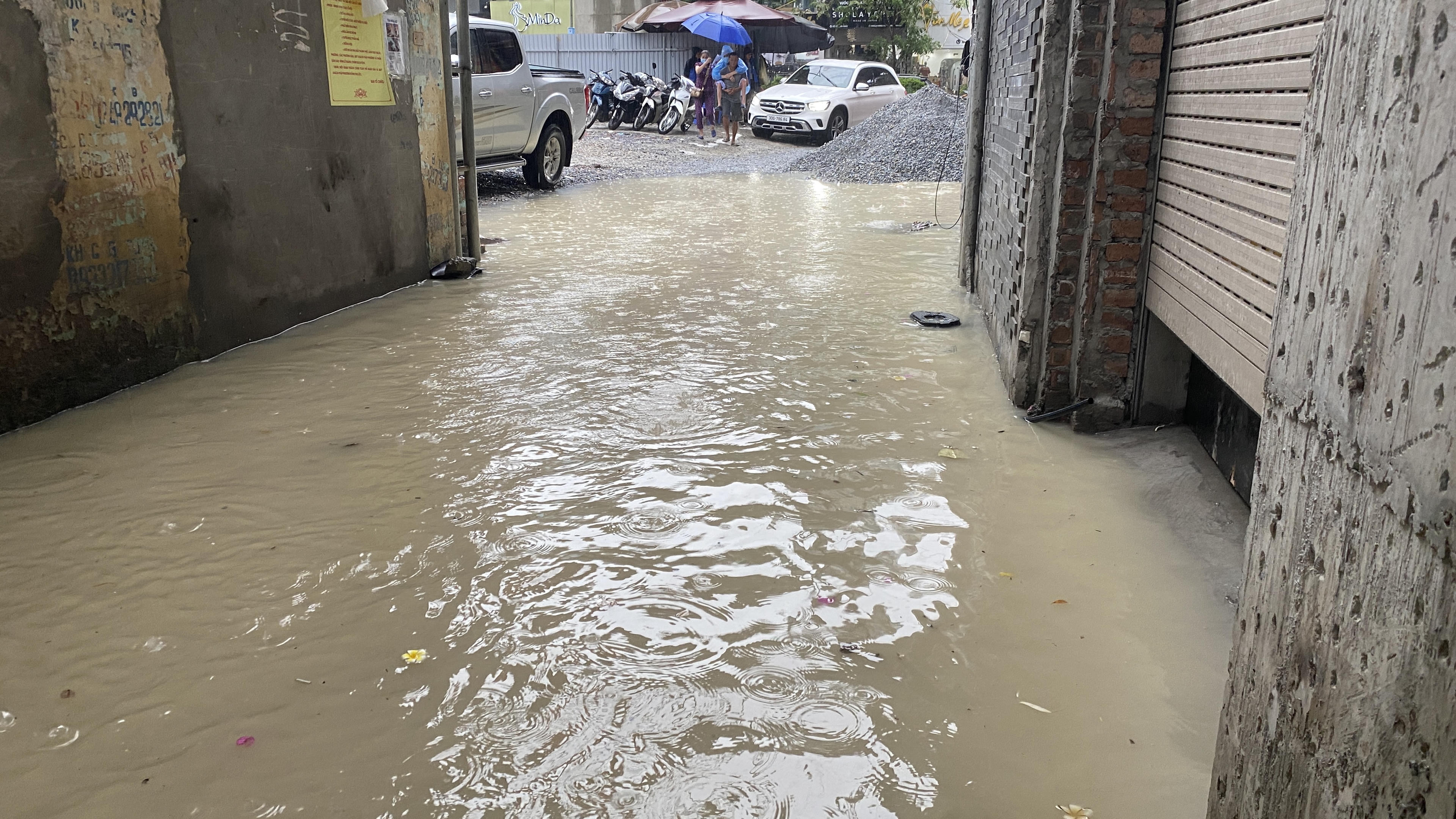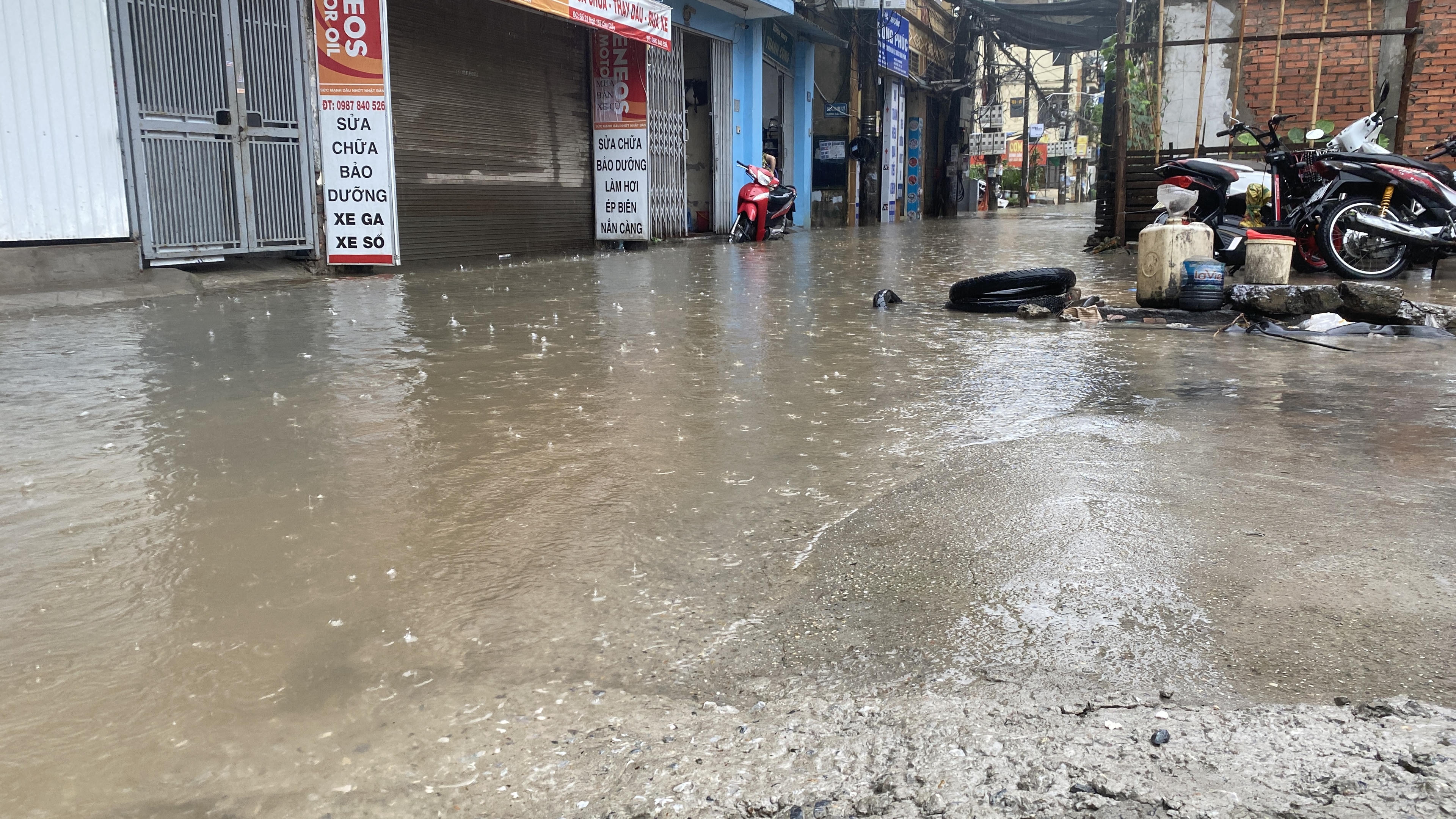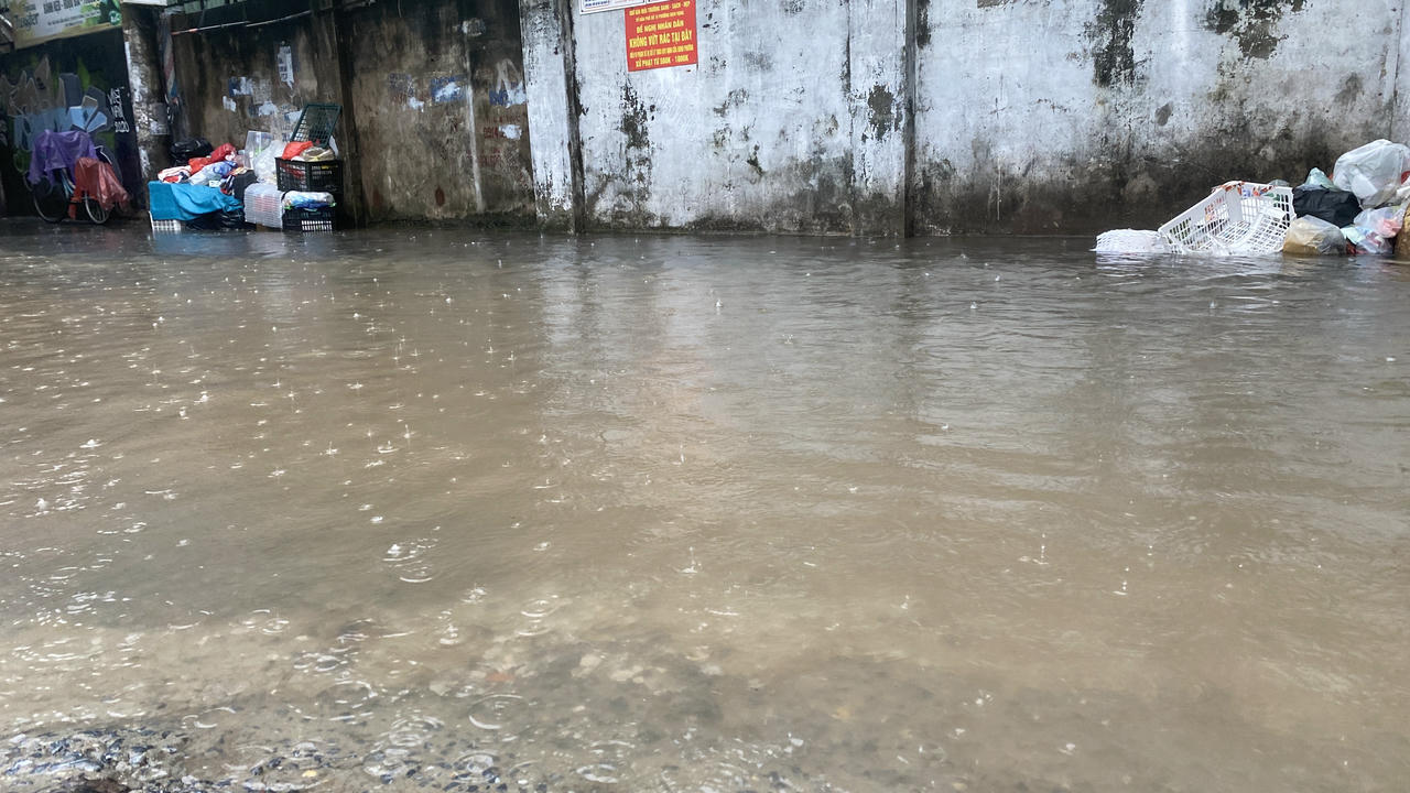 Mưa lớn và ngập đường, khiến người dân hạn chế đi ra ngoài.