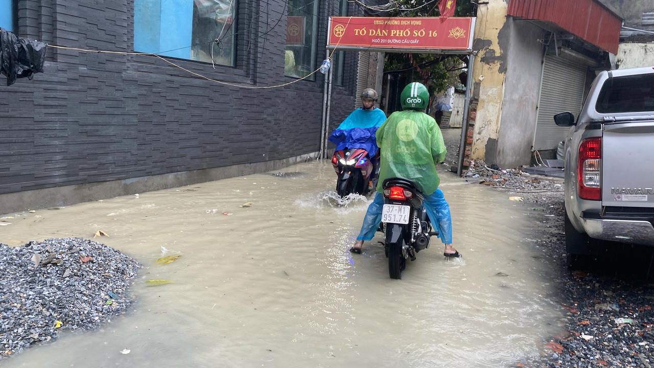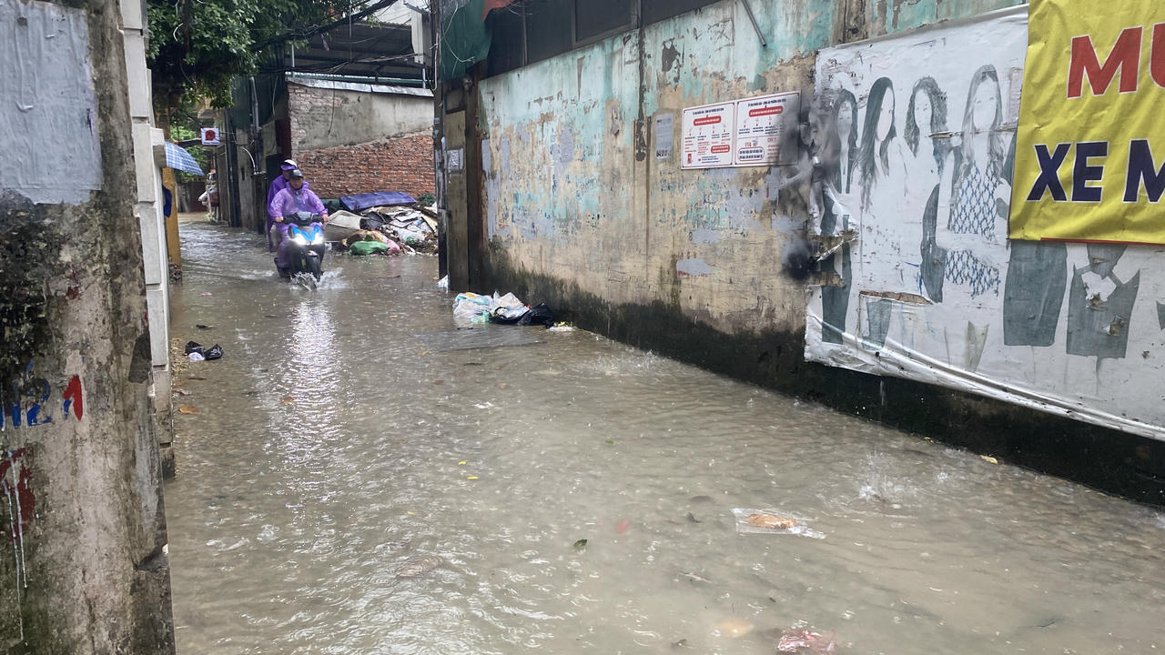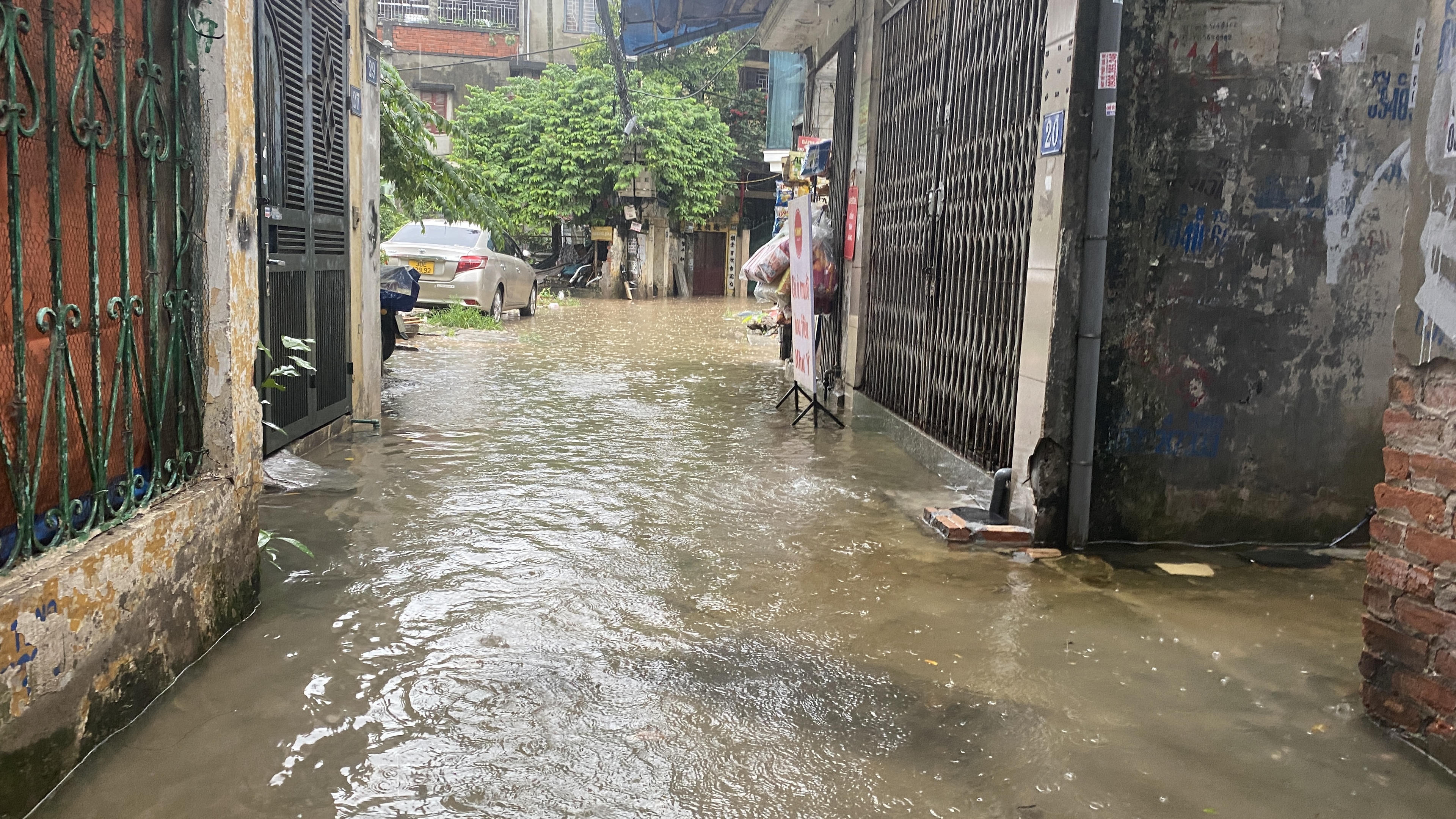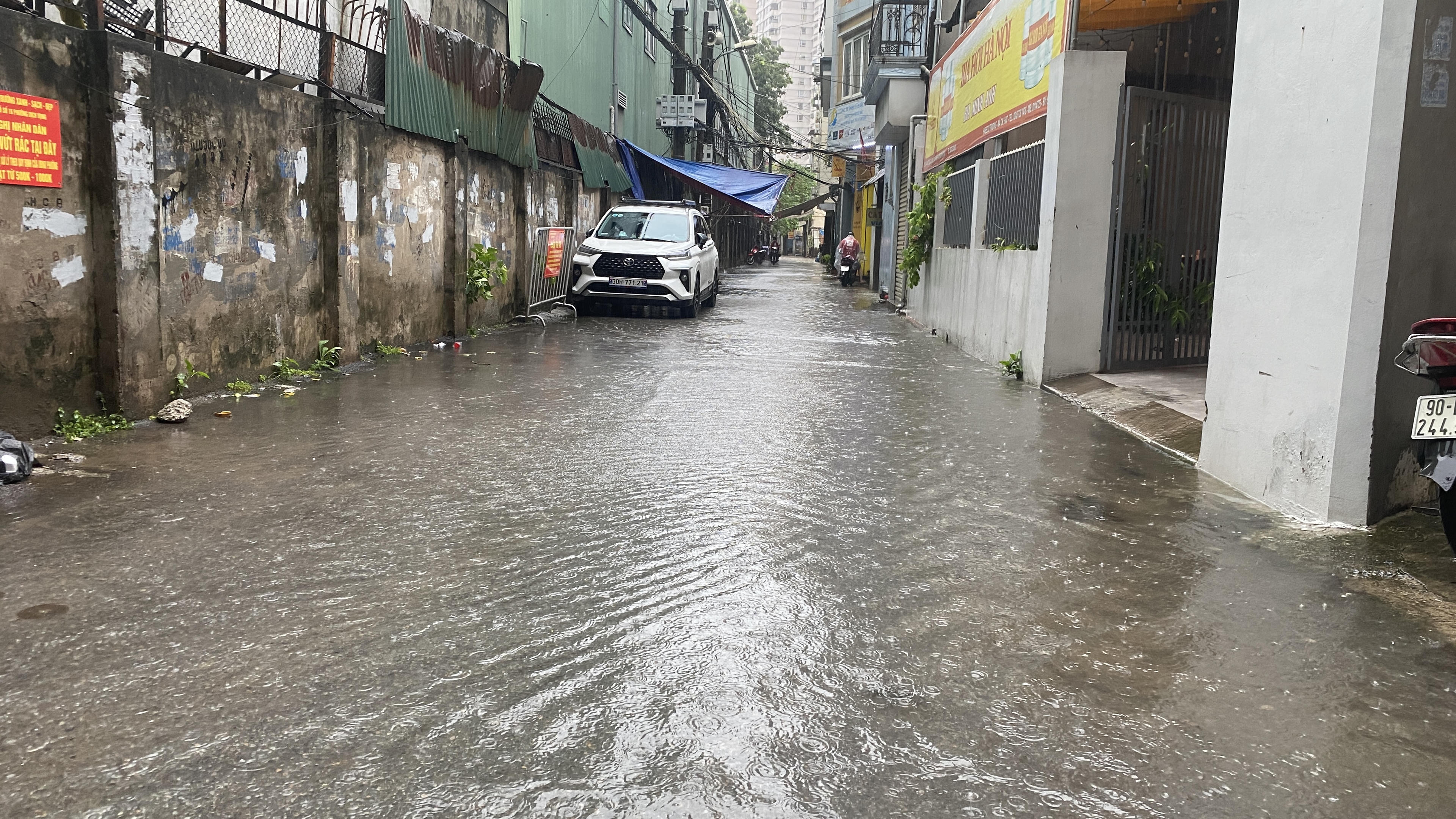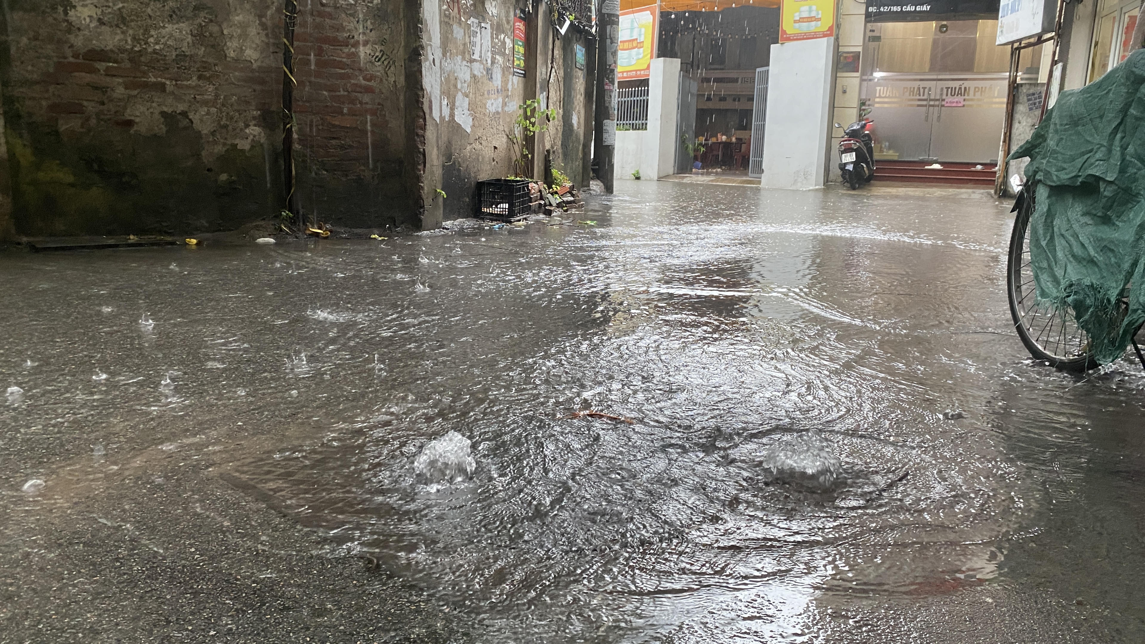 Một con ngõ tại đường Cầu Giấy "chìm" trong biển nước.