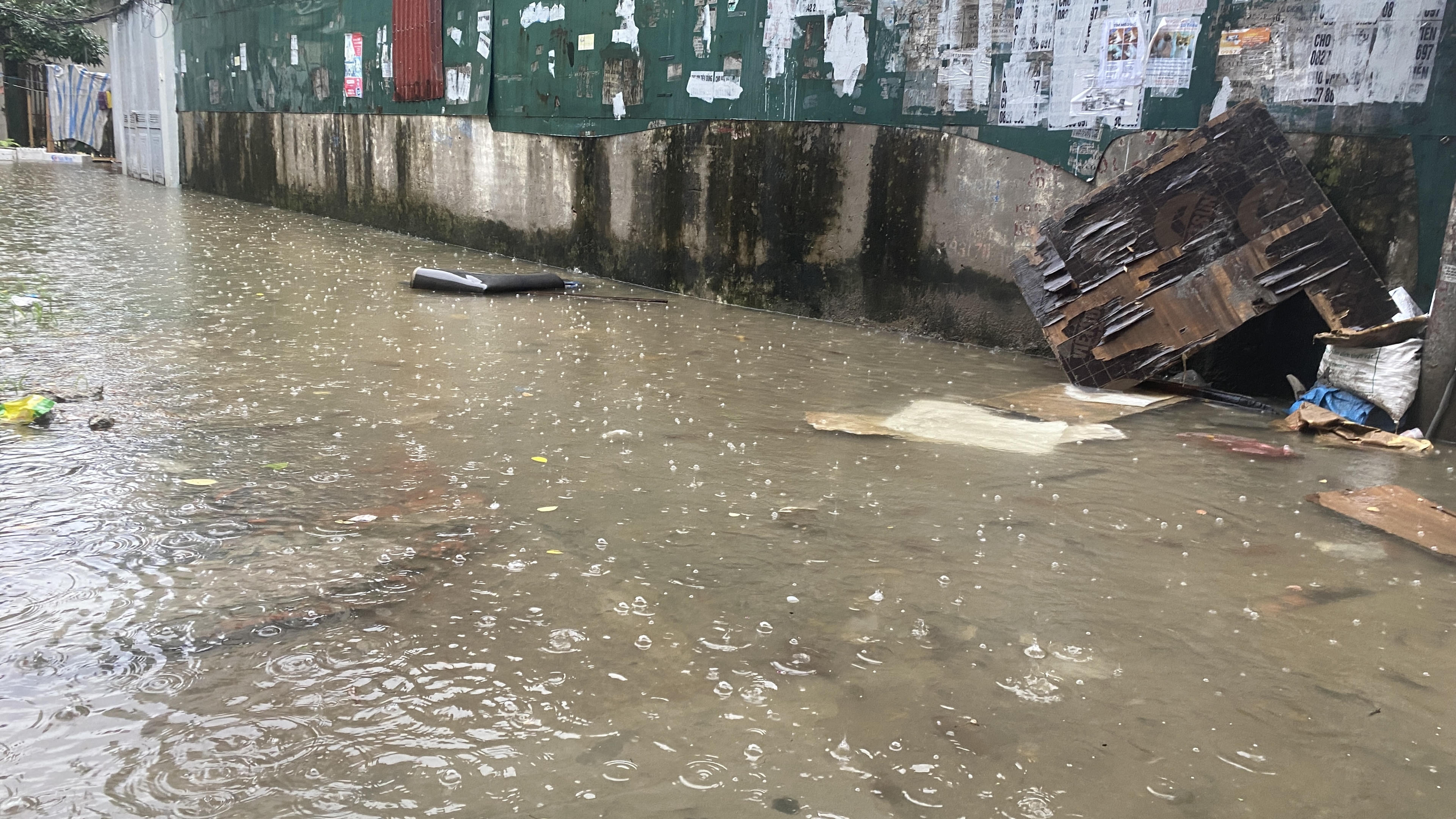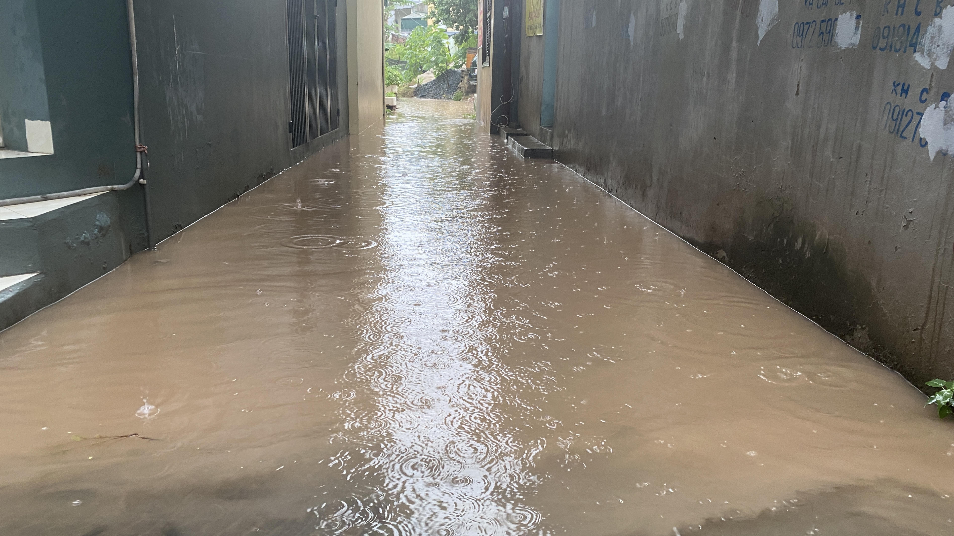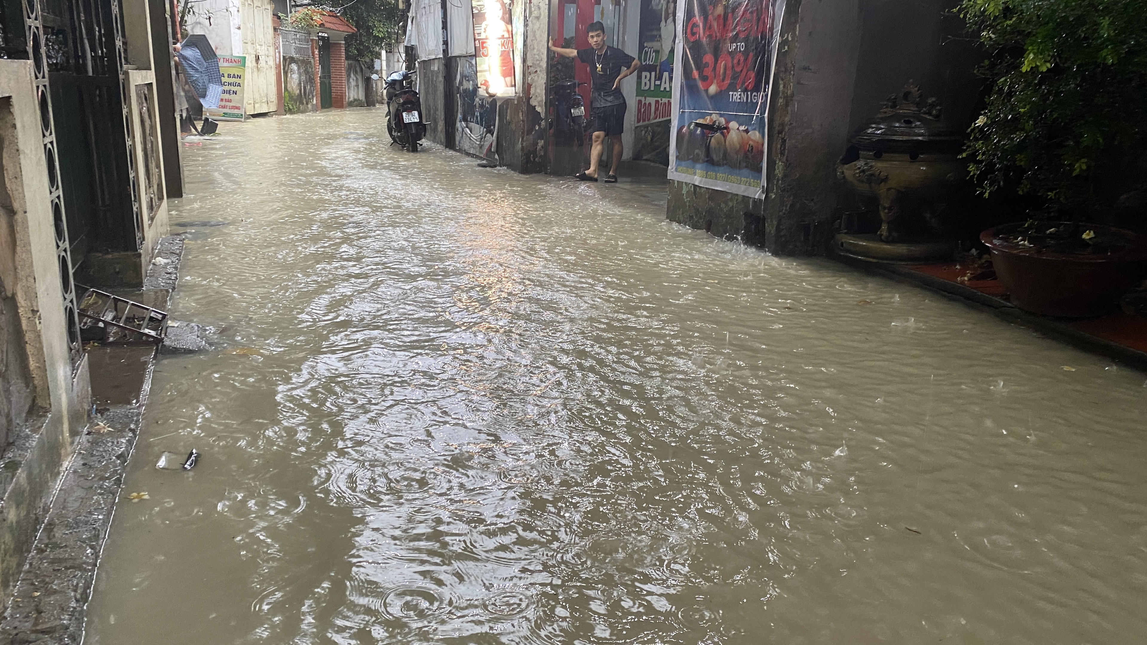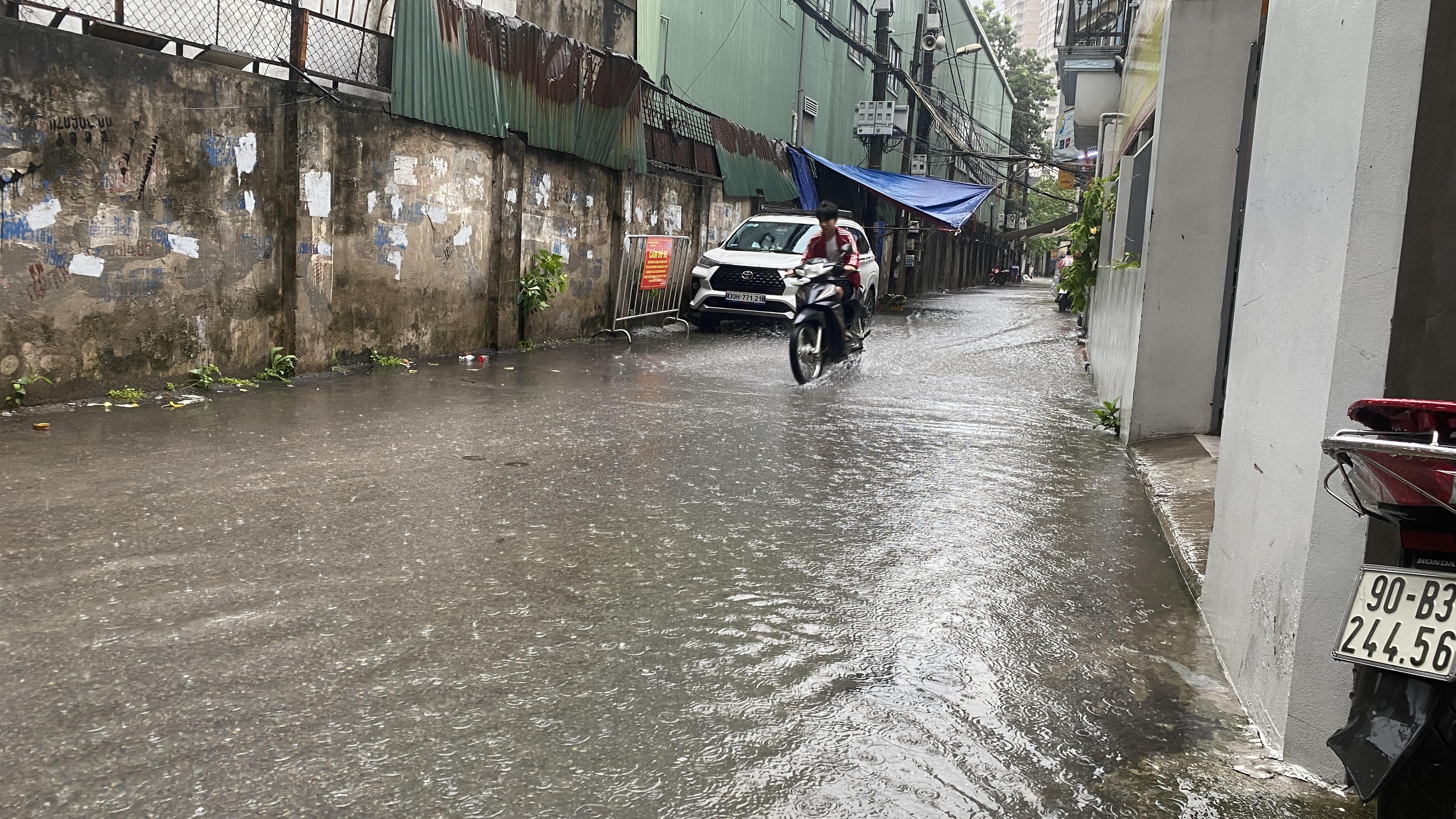 Một con ngõ tại đường Cầu Giấy "chìm" trong biển nước.