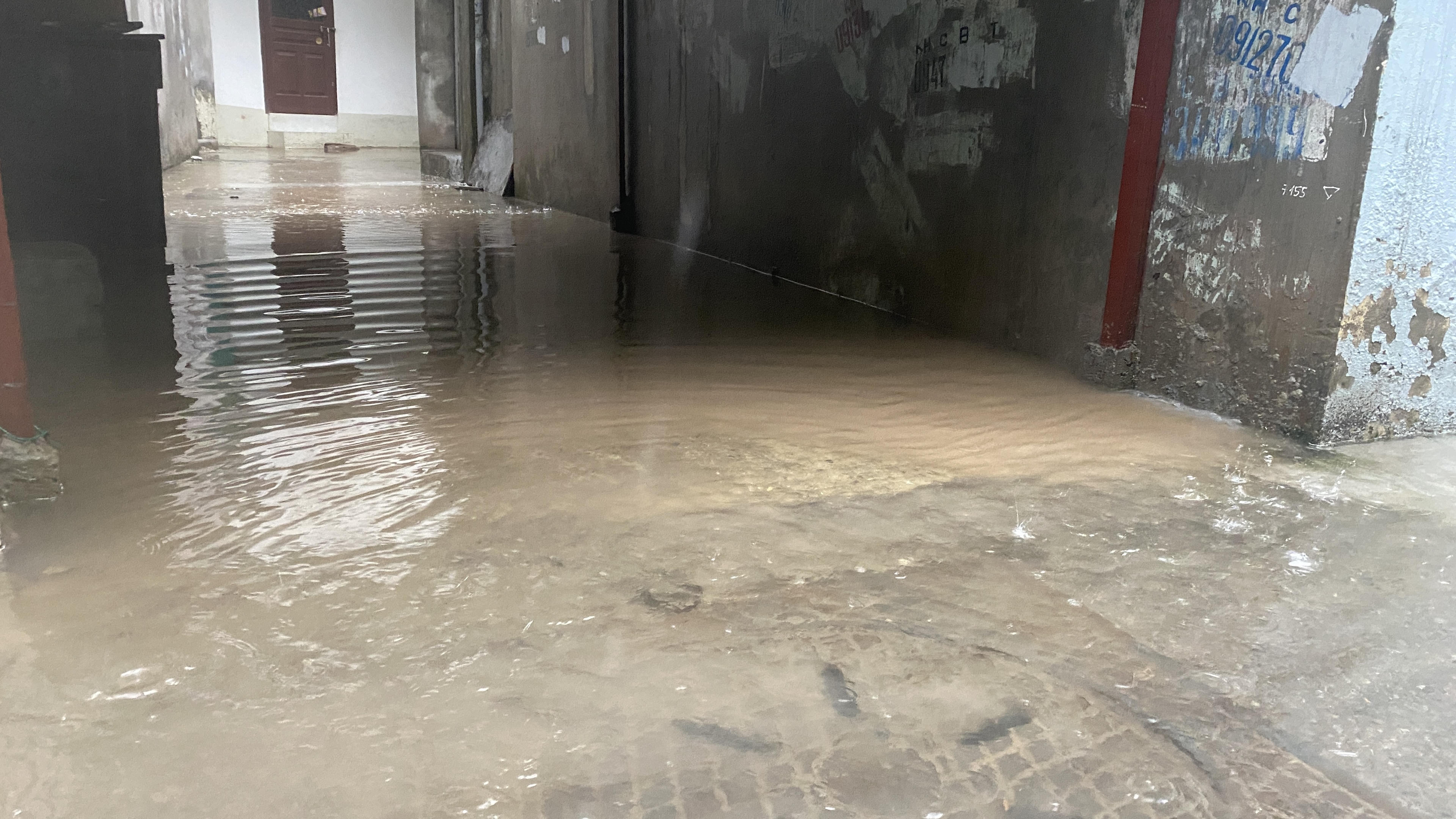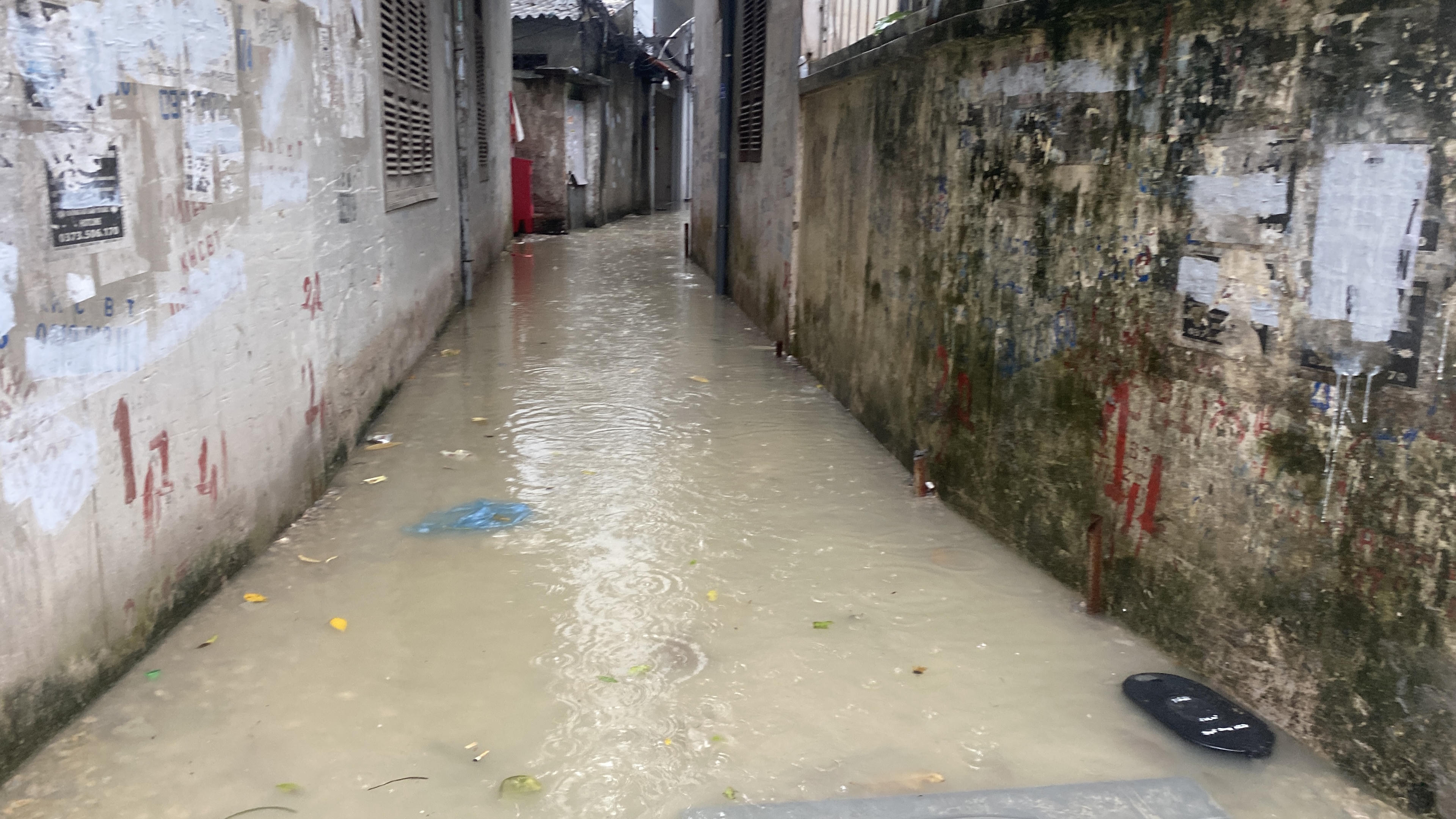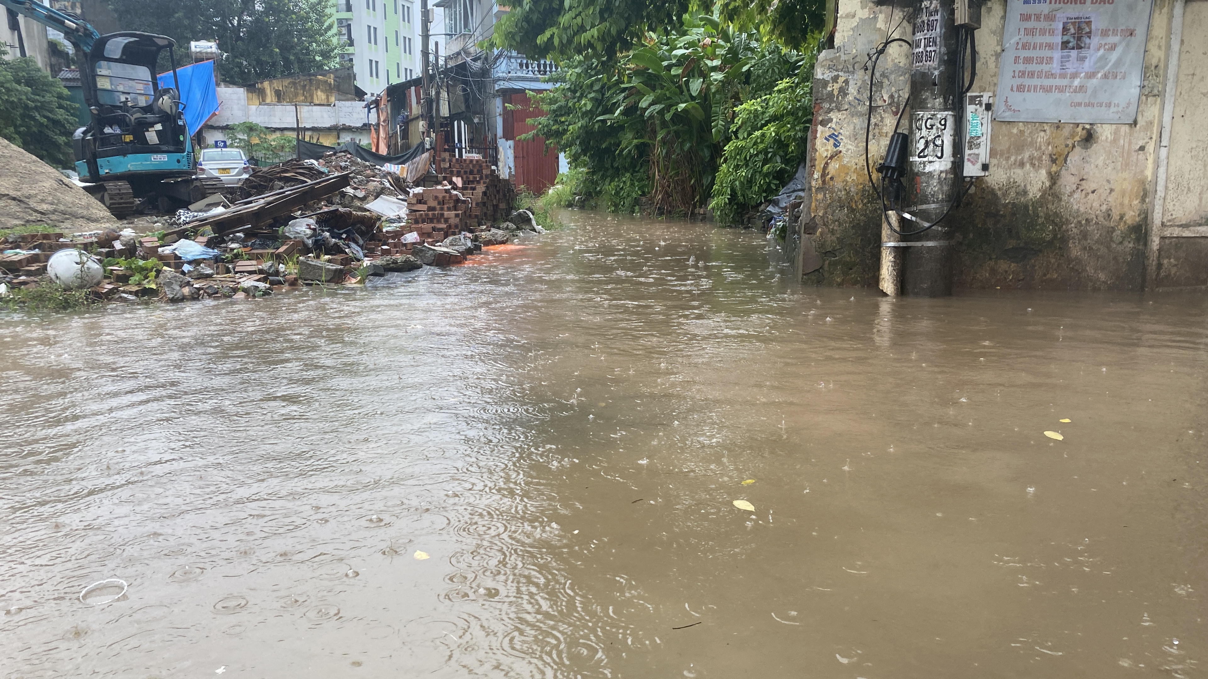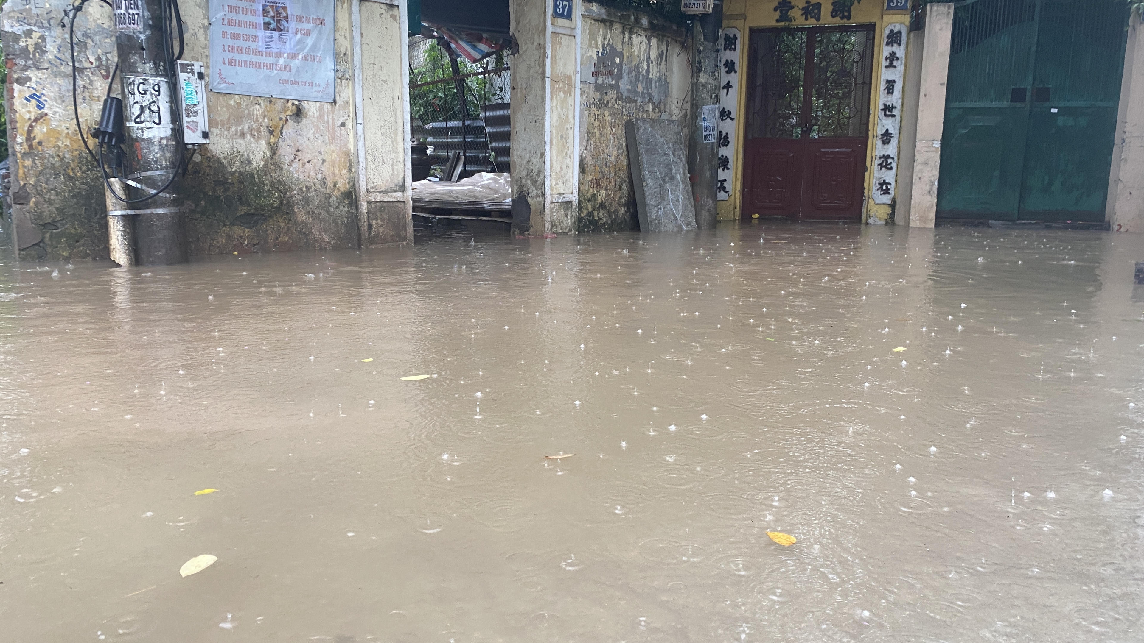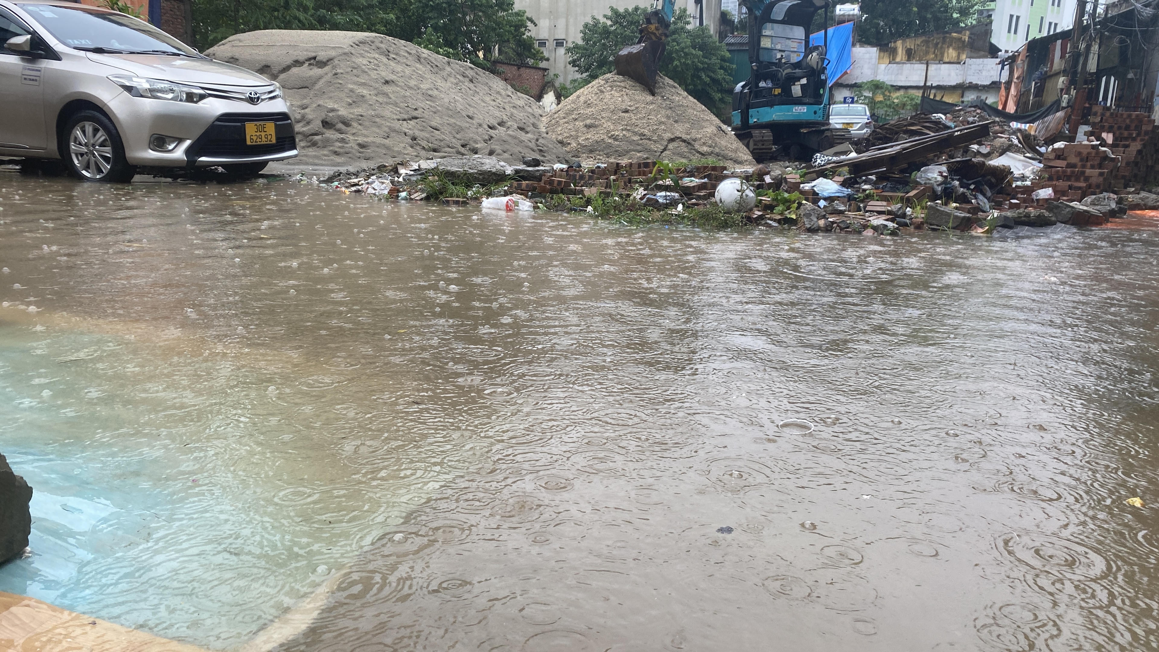 Một con ngõ tại đường Cầu Giấy "chìm" trong biển nước.