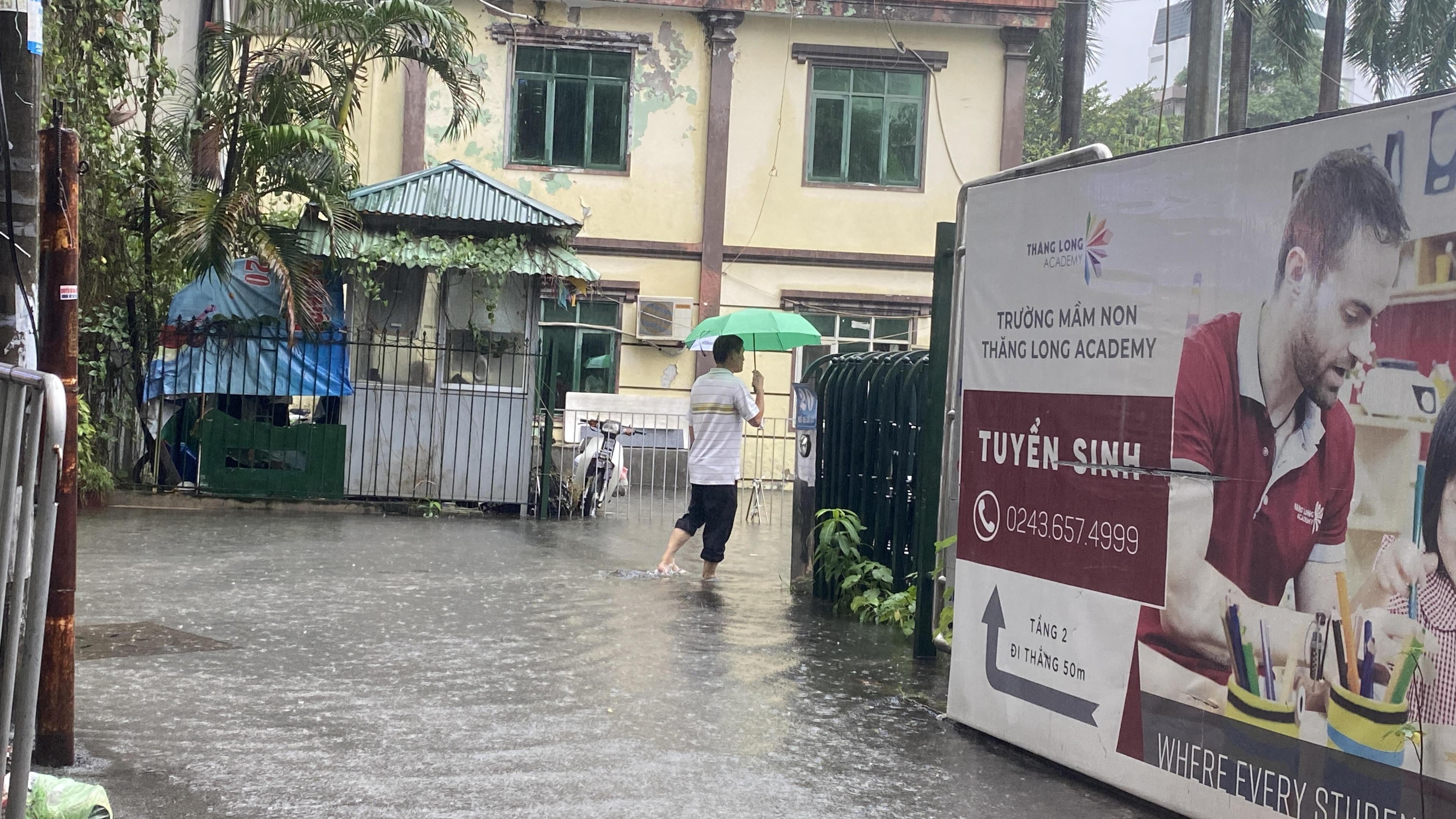 Hà Nội mưa như trút, nhiều đoạn phố 'chìm' trong nước
