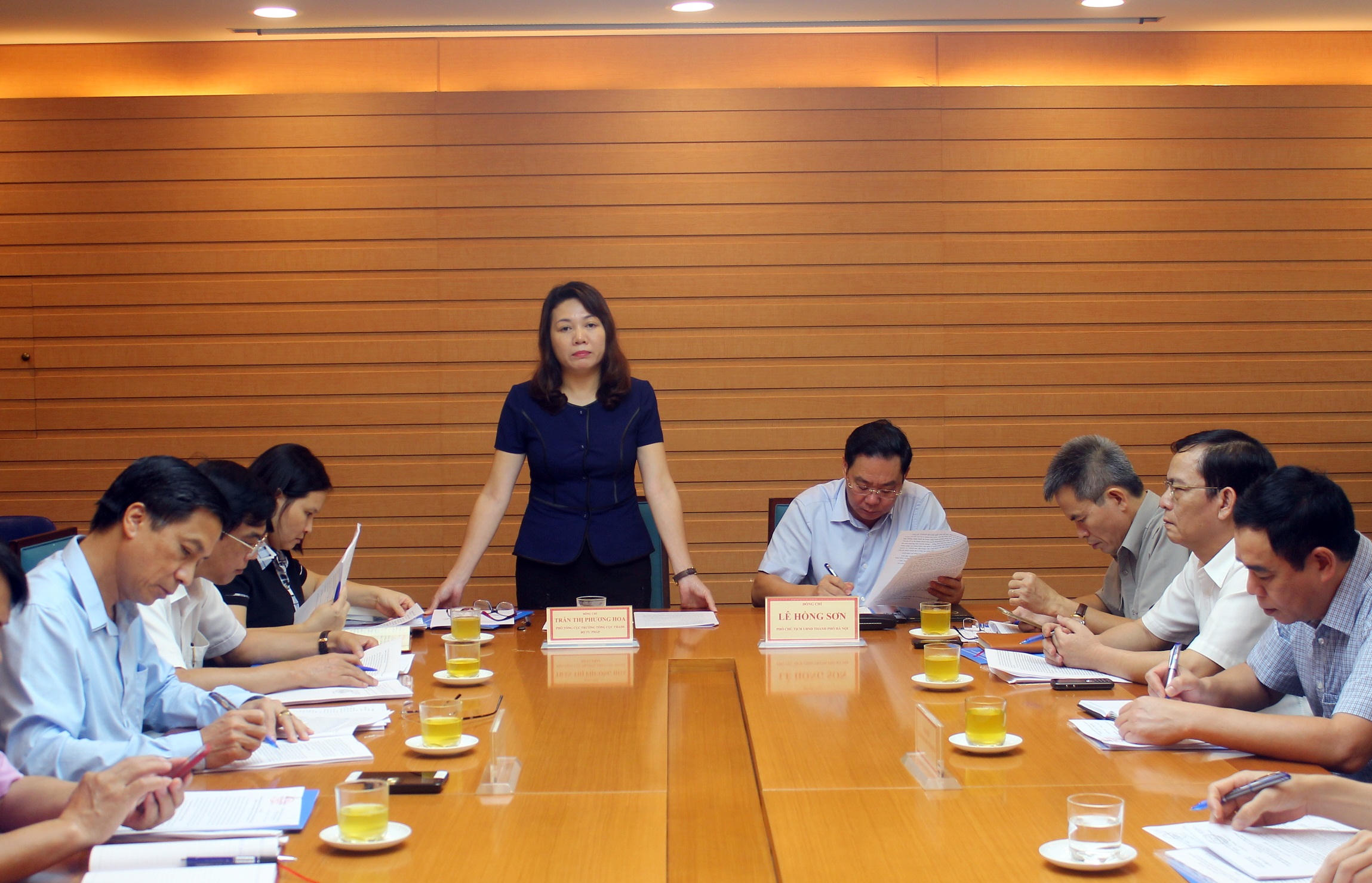 (PLVN) - Theo ủy quyền của Lãnh đạo Bộ Tư pháp, ngày 16/8, Đoàn kiểm tra do Phó Tổng cục trưởng Tổng Cục THADS Trần Thị Phương Hoa dẫn đầu đã đến kiểm tra tình hình chấp hành pháp luật về tố tụng hành chính (TTHC) và công tác thi hành án hành chính (THAHC) tại UBND TP Hà Nội. Tham dự buổi làm việc có Phó Chủ tịch UBND TP Hà Nội Lê Hồng Sơn.