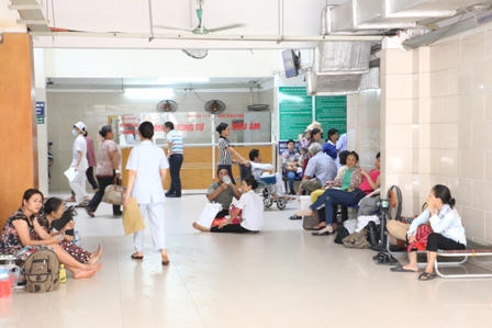 (PLO) - Bệnh viện quá tải, nhà đợi không đủ chỗ, nhiều bệnh nhân và người nhà phải đứng, ngồi vạ vật ở vỉa hè, phơi nắng để chờ khám bệnh...