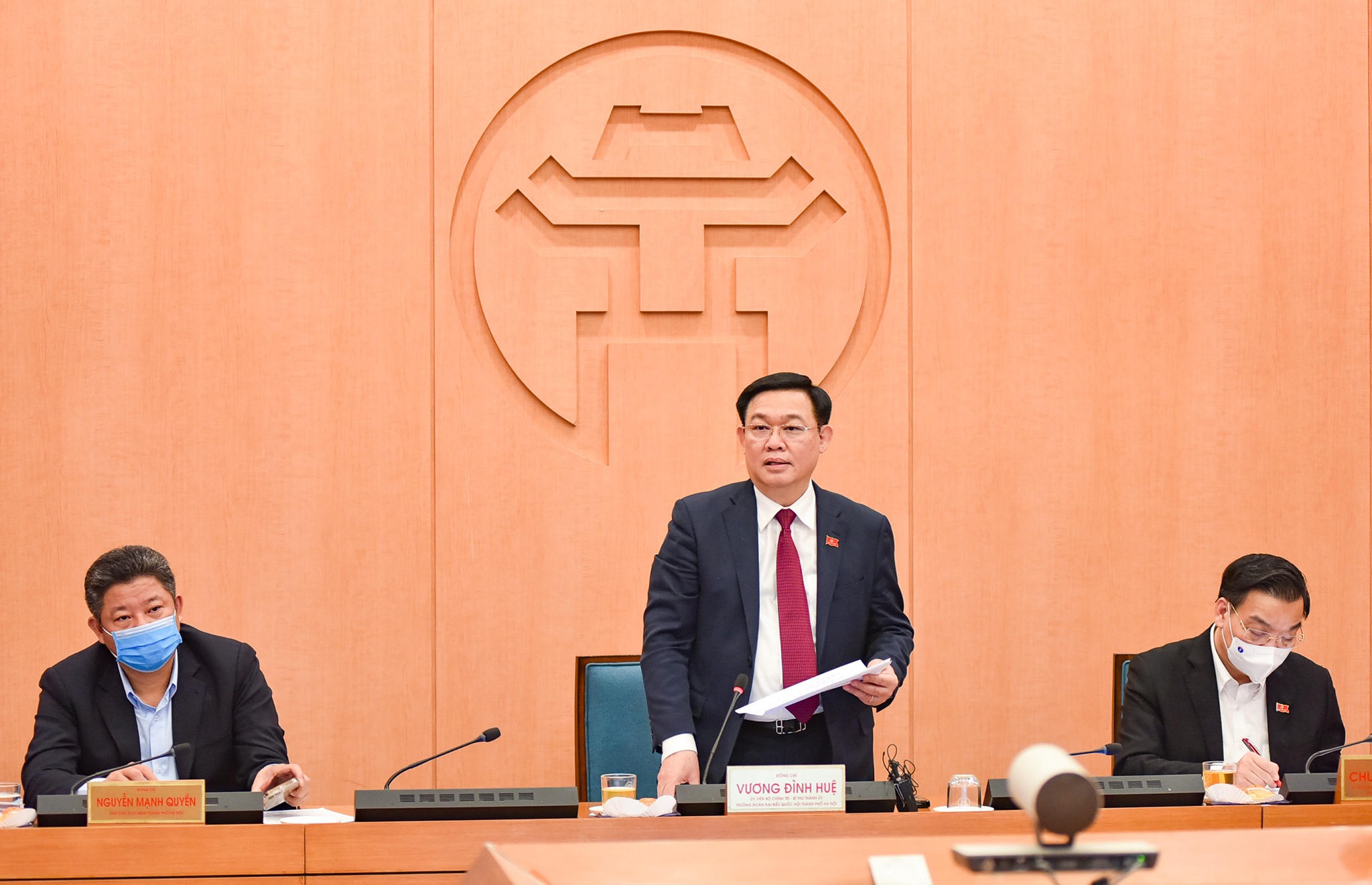 Nhấn mạnh đây là thời điểm quan trọng vì làm tốt công tác phòng chống dịch sẽ vừa bảo vệ sức khỏe của người dân Thủ đô vừa đảm bảo an toàn cho sự thành công của Đại hội Đảng, Bí thư Thành ủy chỉ đạo ngay sau phiên họp, lãnh đạo UBND TP cần có ngay công điện để quán triệt chỉ đạo mới nhất của Thủ tướng, các chỉ đạo của Thành ủy, UBND TP để kích hoạt ngay hệ thống phòng chống dịch xuống tận tổ dân phố. Cả hệ thống chính trị phải vào cuộc ngay trên tinh thần 4 tại chỗ.