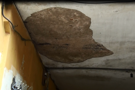 Bà Nguyễn Thị H, 78 tuổi, một cựu công nhân nhà máy Dệt 8/3 sinh sống tại tầng 2 khu nhà A3 đã 50 năm qua. Mặc dù trần nhà đã xuất hiện những vết nứt nẻ ngang dọc theo mối các mảnh ghép bê tông từ cách đây rất lâu, nhưng vì kinh tế khó khăn, gia đình bà vẫn chưa thể thuê người sửa lại. Hàng ngày ở nhà trông cháu, nhưng bà vẫn lo ngay ngáy vì cát trên trần cứ rơi xuống đứa cháu đang nằm chơi.