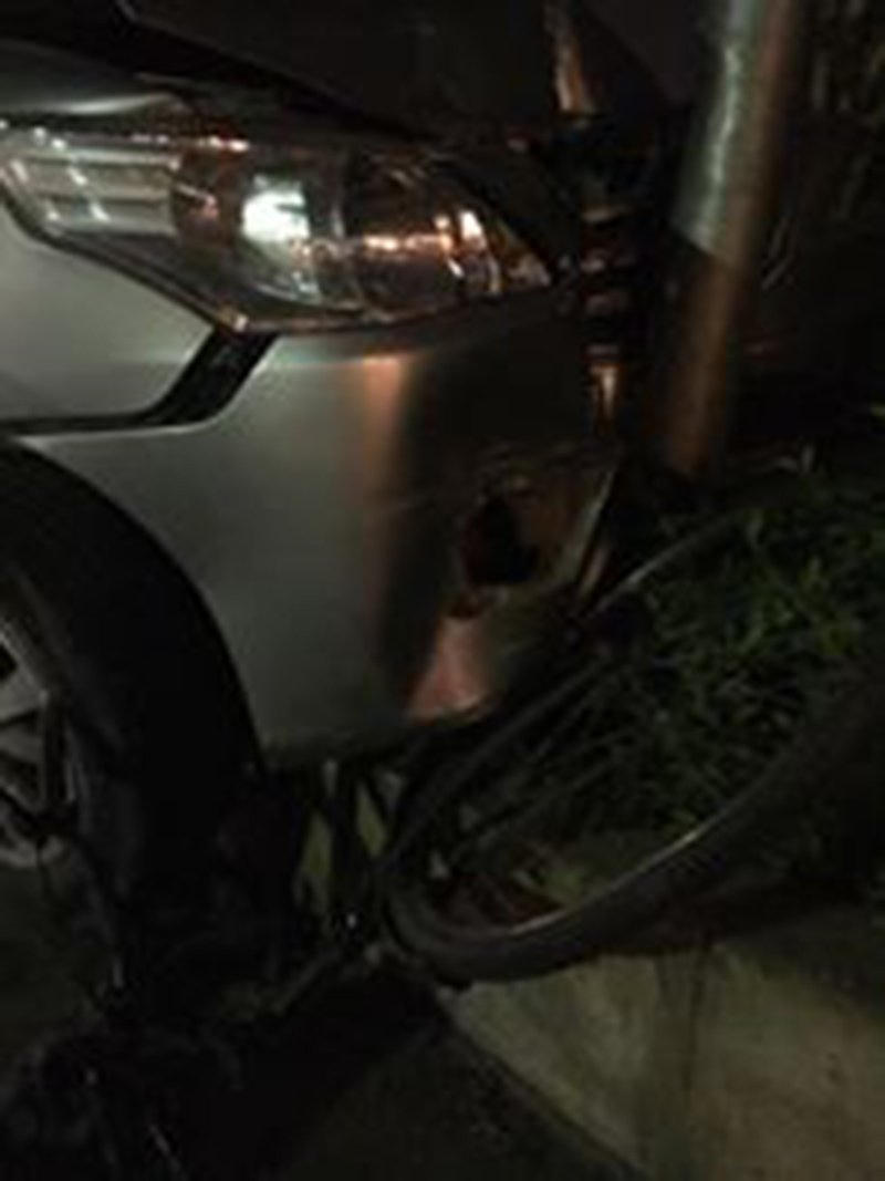 Chiếc xe chỉ dừng lại khi đâm thẳng vào trụ đèn ven đường.Tại hiện trường, đầu ô tô bị móp, chiếc xe đạp bẹp dúm kẹp vào cột điện, một chiếc xe máy khác bị hất tung, nằm giữa đường.
