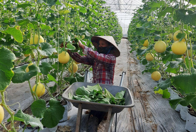 Thu hoạch dưa lưới tại HTX rau quả sạch Chúc Sơn (huyện Chương Mỹ). ( Ảnh:Hà Nội mới) |