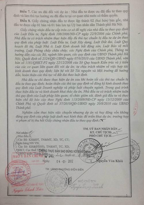 Từ tờ giấy ủy quyền này, ông Long còn phát hiện ra, Công ty HT Land không được chủ đầu tư ủy quyền ký hợp đồng mua bán căn hộ nhưng đã sử dụng giấy ủy quyền hết hạn (sửa chữa lại nội dung ủy quyền) cùng các văn bản thỏa thuận pháp lý cũ không còn giá trị sử dụng để giao dịch mua bán căn hộ và nhận tiền đặt cọc của khách hàng; chủ đầu tư là Công ty Traco và Công ty HT Land đã bán căn hộ và thực hiện các giao dịch không thông qua sàn giao dịch bất động sản như quy định.