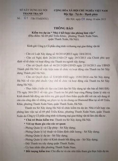 Hà Nội: Phát lộ hàng loạt sai phạm tại Dự án Diamond Blue - 69 Triều Khúc