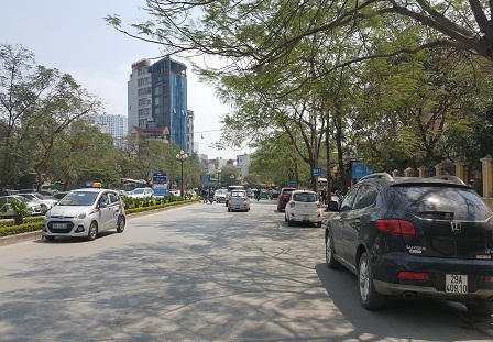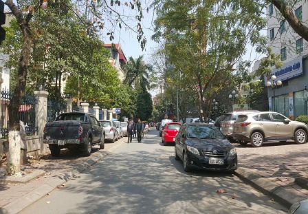 | Các điểm trông xe không phép và hàng trăm xe ô tô "cướp" mất vỉa hè của người dân xung quanh hồ Ba Mẫu (quận Đồng Đa). |