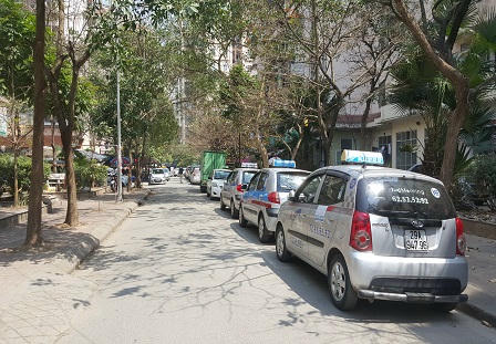 | Những tuyến đường xung quanh đường Nguyễn Thị Thập, Hoàng Đạo Thúy, cả trăm chiếc xe taxi lấn chiếm hết lòng đường, vỉa hè của người đi bộ. |