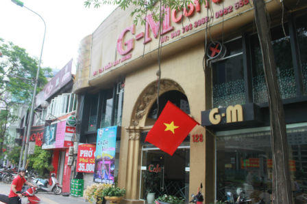 | Đường Trần Duy Hưng có nhiều quán ăn nhà hàng của người Hàn Quốc và Nhật Bản cũng treo Quốc kỳ Việt Nam trước cửa nhà hàng. |