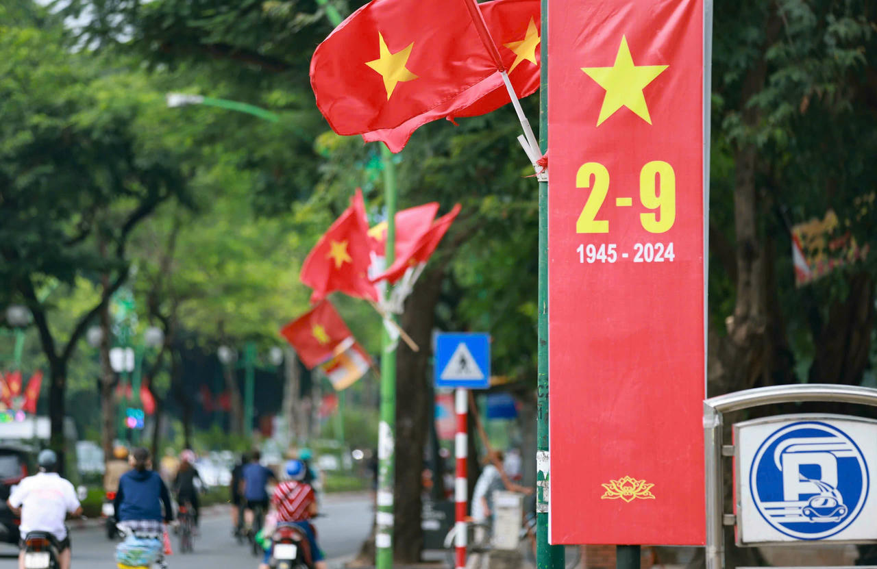 Không khí chào mừng Kỷ niệm 79 năm Cách mạng Tháng Tám và Quốc khánh 2/9 (2/9/1945 - 2/9/2024) lan tỏa khắp phố phường Thủ đô Hà Nội.