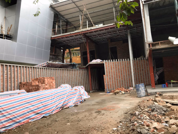 Đặc biệt, khu đất này lại có dấu hiệu xây dựng một số hàng mục. Cụ thể, ở vị trí lô số 3 của khu đất, một số bức tường bằng vật liệu gạch mới được xây dựng tại dây, bên cạnh đó các cọc sắt và mái được đem tới để làm thành khung kết cấu của một ngôi nhà nhỏ. Phía bên ngoài, được rào tôn kín che chắn, bên trong thực hiện hoạt động xây dựng.