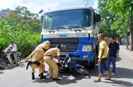 Tại hiện trường, chiếc xe máy BKS: 29K6 - 3294 đang nằm trong gầm xe bồn chở bê tông mang BKS: 29LD - 000.44. Cách đó hơn 10m, nạn nhân được biết là cầm lái xe máy đã tử vong tại chỗ. Vật dụng cá nhân và dày dép vẫn còn ngổn ngang ở đó.