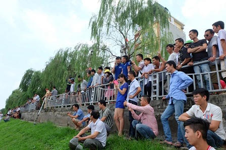 Đến hơn 12h vẫn đang tìm phương án đưa chiếc xe lên bờ. 1 xe cứu thương và 2 xe quân dụng của lực lượng cứu hộ được đưa tới hiện trường. Tại hiện trường, chiếc xe taxi nằm giữa sông Tô Lịch ngập phủm. Khoảng 2 mét hàng lan can sắt bị "hạ gục". Rất đông người dân hiếu kỳ đến xem vụ tai nạn.