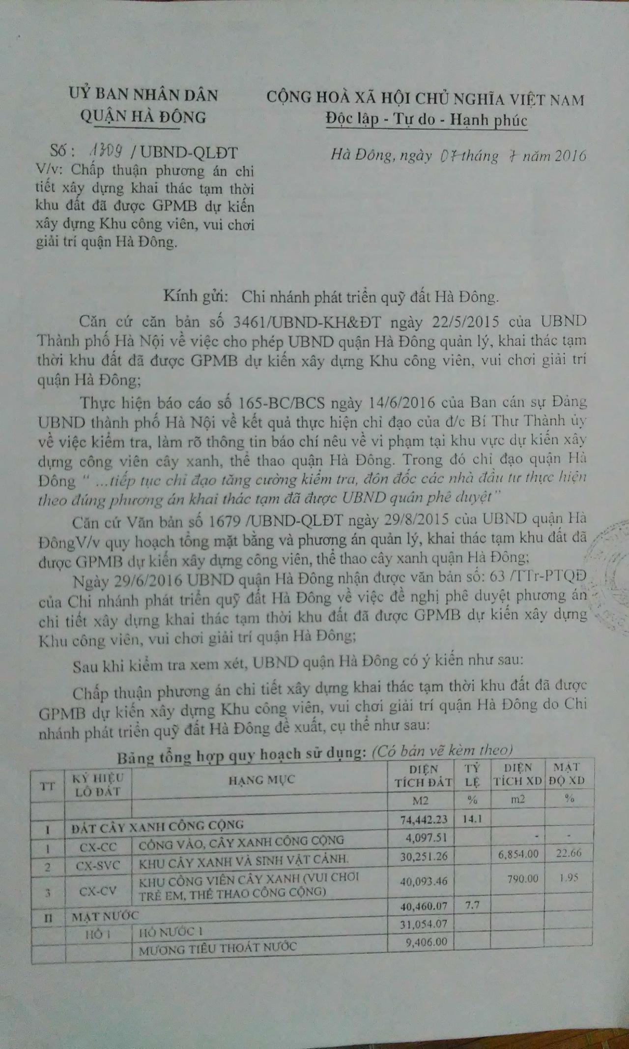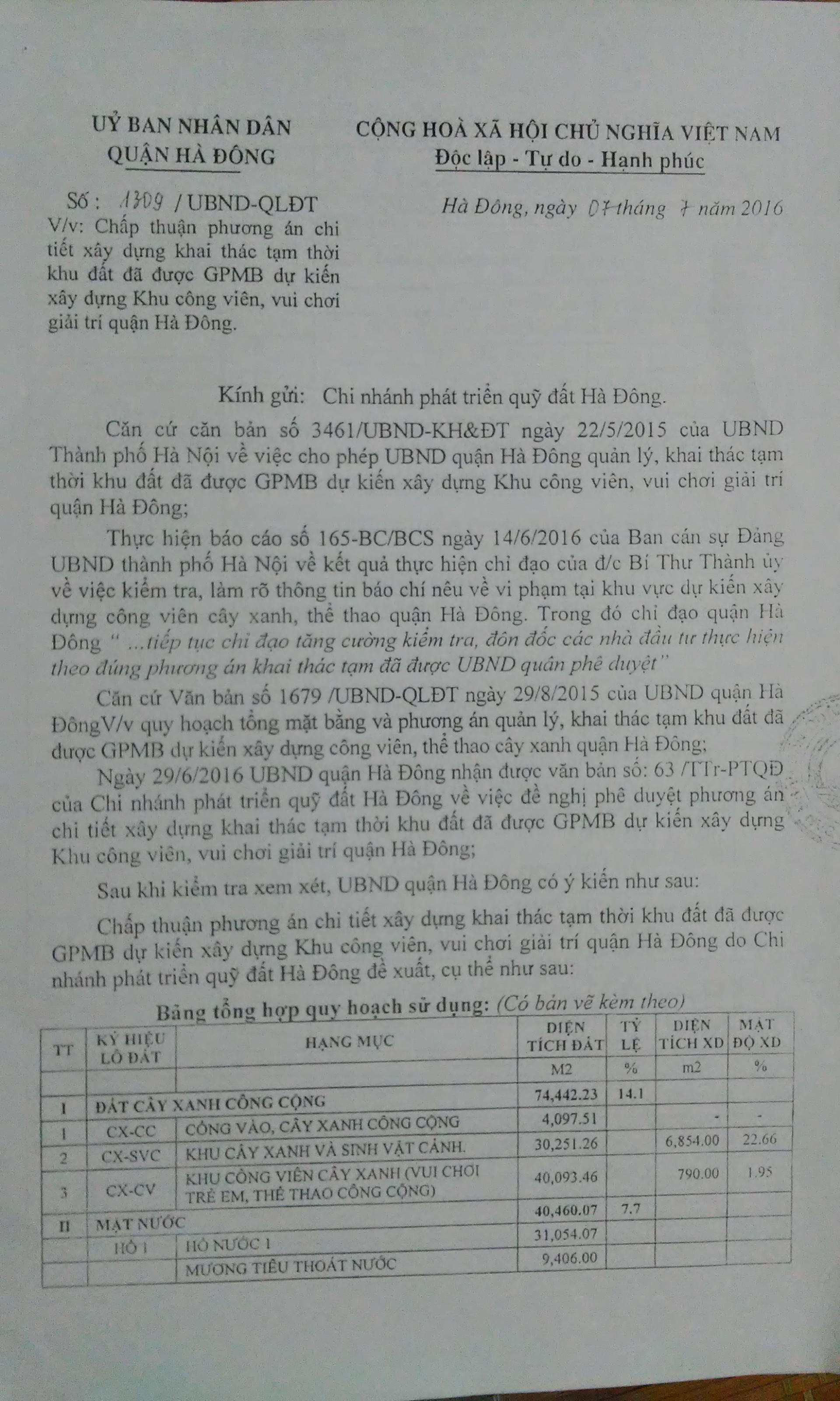 Đại diện Chi nhánh phát triển quỹ đất Hà Đông cho biết, do chưa triển khai xây dựng được Dự án công viên, thể thao cây xanh nên UBND quận đã đề xuất với TP. Hà Nội thí điểm mô hình khai thác tạm phần diện tích hoang hóa tại đây để chống tái lấn chiếm, đổ phế thải và tăng nguồn thu cho ngân sách.