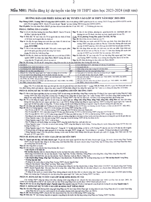 Chi tiết mẫu Phiếu đăng ký dự tuyển vào lớp 10 THPT năm học 2023-2024: