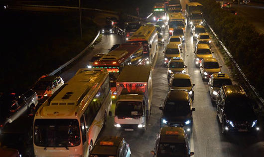 | Sau giờ làm việc không chỉ xe khách mà lượng lớn xe ô tô con của gia đình bắt đầu hành trình rời thủ đô để về quê hoặc đi du lịch trong những ngày nghỉ lễ. |