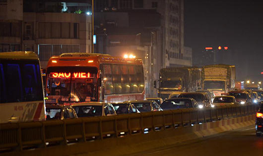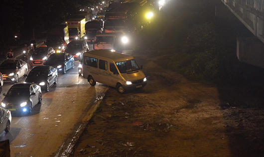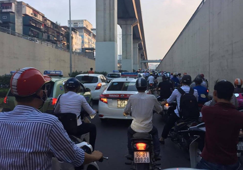 Còn trên đoạn đường Giải Phóng qua cổng bến xe Nước Ngầm, theo ghi nhận của phóng viên, chiều tối nay đã xảy ra ùn tắc kéo dài, nhiều phương tiện đứng im giữa đường, xe máy leo lên vỉa hè hi vọng thoát ra khỏi đám đông. Nhiều xe máy kể cả ô tô phải leo lên lề đường, hầm cầu cạn trên trục đường vành đai 3 để thoát ùn tắc.