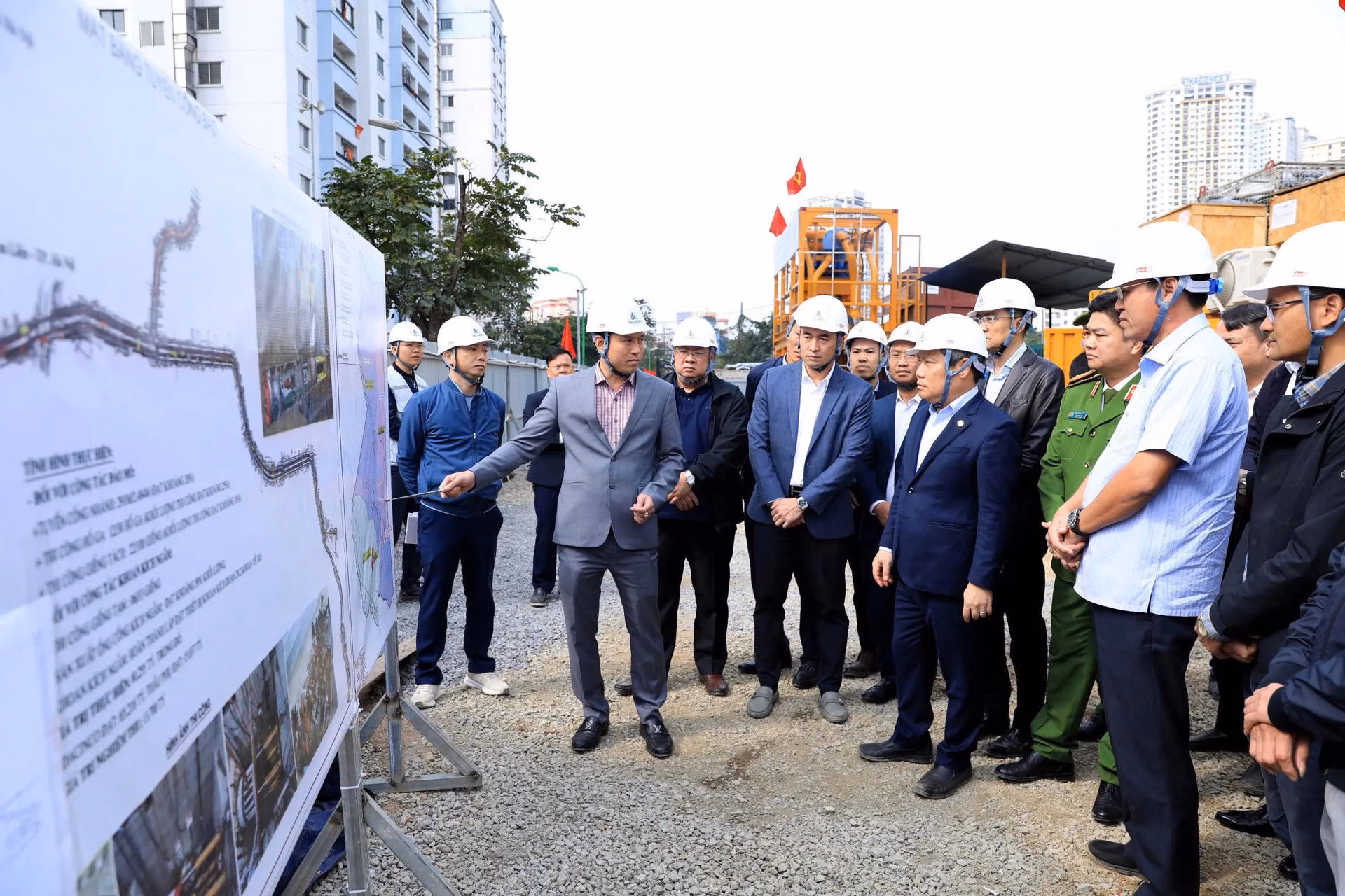 Chủ tịch UBND TP Vũ Đại Thắng biểu dương các đơn vị đã chủ động khắc phục khó khăn về mặt bằng, điều kiện thời tiết và tổ chức thi công khoa học, đặc biệt là việc duy trì lực lượng trực Tết để triển khai các hạng mục then chốt.