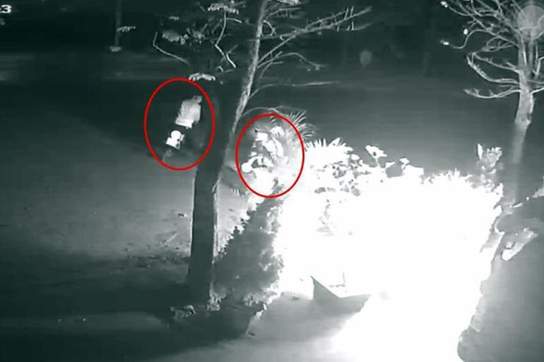 Hình ảnh hai đối tượng ném "bom xăng" được camera ghi lại (Ảnh: Công an Hà Nội).