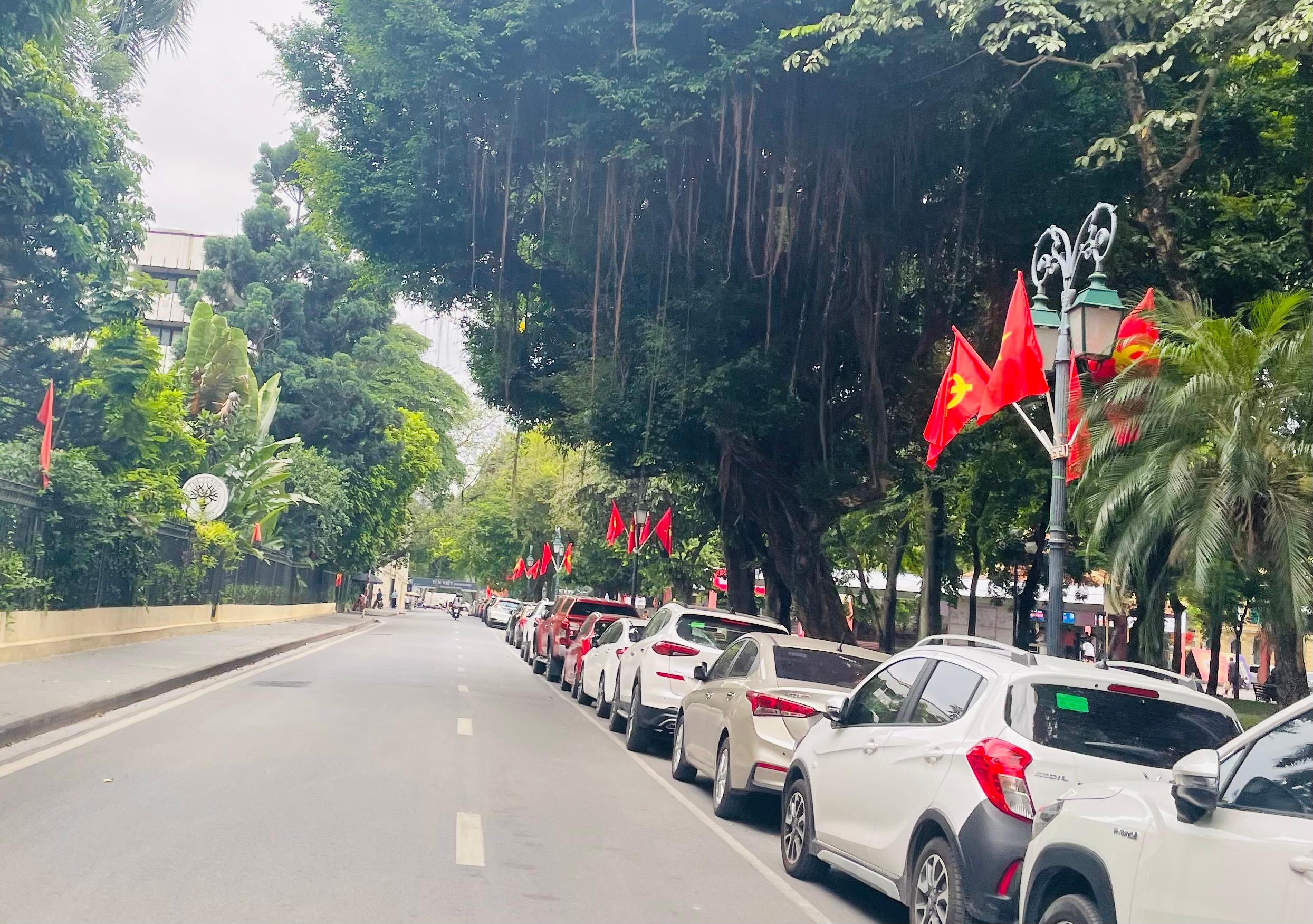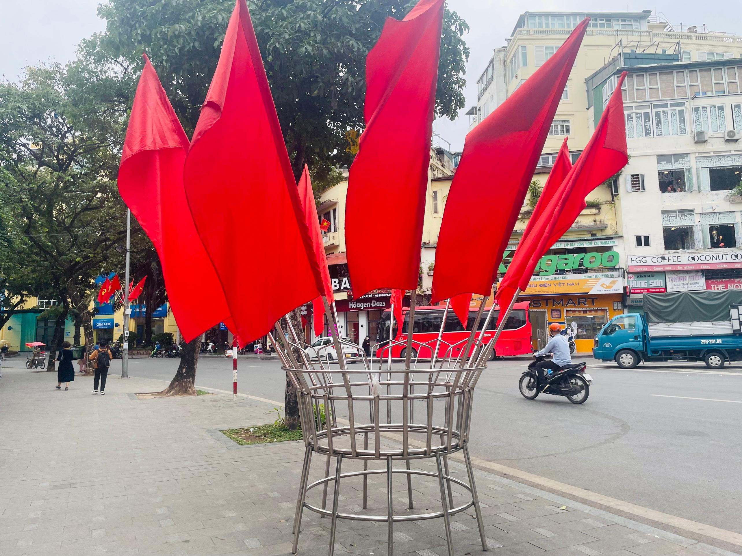 Khu vực Quảng trường Đông Kinh Nghĩa Thục tưng bừng cờ đỏ.