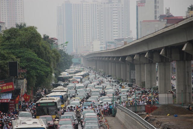 Tình trạng ùn tắc kéo dài suốt từ khu vực quận Hà Đông, trải dọc đường Nguyễn Trãi đến đoạn đường Khuất Duy Tiến, lan sang cả đường Lê Văn Lương, Nguyễn Xiển. Giao thông khu vực này gần như "tê liệt".