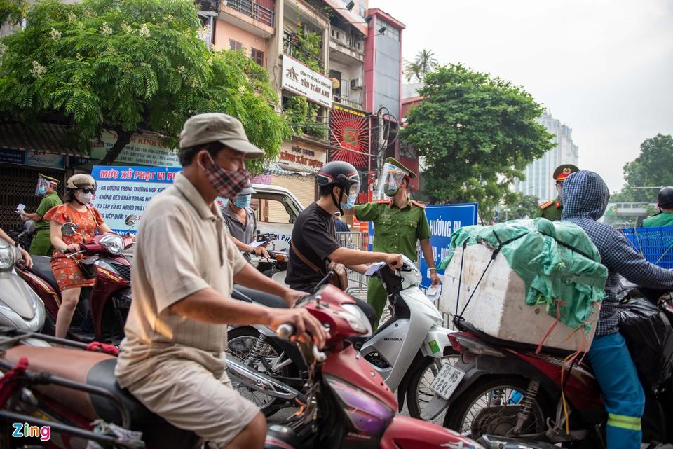 Chốt kiểm soát dịch COVID-19 trên phố Đào Tấn (phường Ngọc Khánh, quận Ba Đình) đông phương tiện lưu thông. Ảnh Zing.