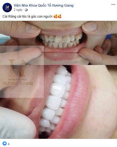 Ở một diễn biến khác, để xác thực việc Viện thẩm mỹ Quốc tế Hương Giang tư vấn bọc răng sứ và thực hiện thủ thuật lấy cao răng cho khách hàng, phóng viên đã được tư vấn trên fanpage Nha khoa quốc tế Hương Giang với nội dung: "Chúng tôi đã được tư vấn dán răng sứ. Dán sứ sinh học đang ưu đãi giảm giá còn 315.000/1 chiếc. Combo 16 chiếc ưu đãi còn 5 triệu”.