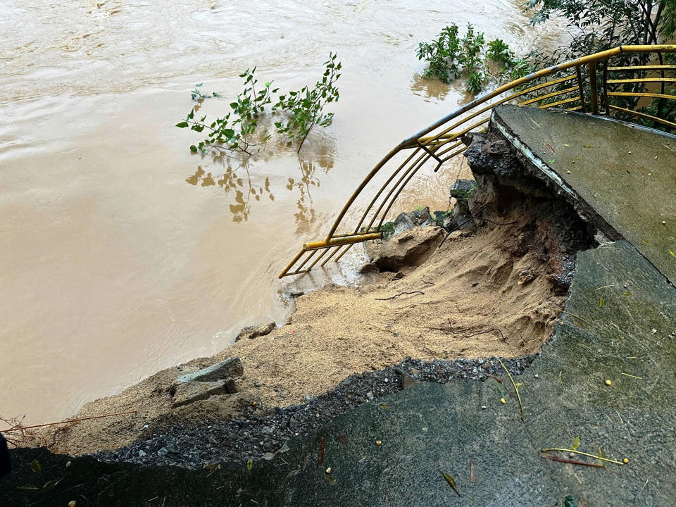 Một số khu vực sông bị dòng nước lũ "nuốt chửng" vài mét. |