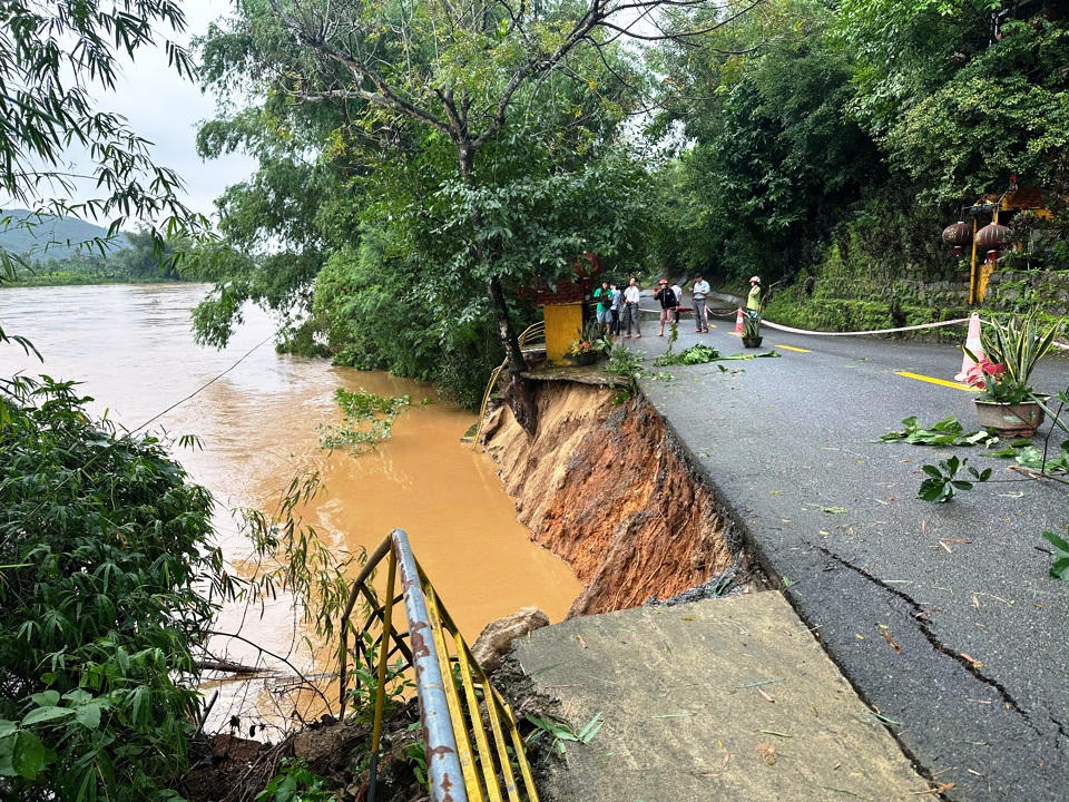 Nước lũ chảy mạnh đã gây xói lở và rút ruột phần đất dưới mặt đường ở phía Nam (bờ kè sông Trà Câu), làm rỗng ruột phía dưới mặt đường bê tông, dẫn đến hàng loạt vị trí, đoạn trên tuyến giao thông này, bị sụp, bể nặng. Nhiều đoạn phần đất phía dưới đường bê tông đã bị “khoét sạch ruột”, với chiều dài cả trăm mét, gây khó khăn, nguy hiểm cho phương tiện qua lại trên tuyến đường này.