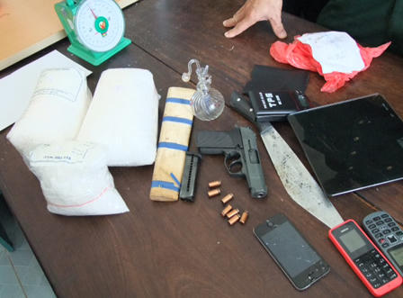 Tại hiện trường, lực lượng chức năng thu giữ 3,7 kg Ma túy đá, 1 khẩu súng quân dụng, 7 viên đạn,1 dao mẹo, 2 cân tiểu ly, 1 bộ dụng cụ sử dụng Ma túy đá, 2 điện thoại di động và 1 xe ô tô 5 chỗ hiệu NISAN mang BKS 37A - 23115. Bước đầu, các đối tượng khai nhận số Ma túy trên được mua từ một người Lào và đưa qua Cửa khẩu Quốc tế Cầu treo sau đó vận chuyển vào TX.Kỳ Anh bán cho một số đối tượng trên địa bàn nhưng chưa kịp “giao hàng” thì bị các lực lượng chức năng bắt giữ.
