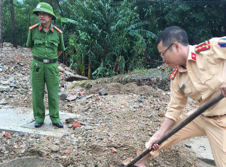 (PLO) - Mưa lớn kéo dài khiến nhiều tuyến đường bị sạt lở, hàng chục chiến sĩ công an được huy động xuống đường dọn bùn, để đảm bảo giao thông được thông suốt.