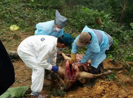 Liên quan đến sự việc, ông Nguyễn Minh Long - Trưởng trạm Thú y huyện Hương Khê cho biết: Sau khi nhận được thông tin lực lượng thú y huyện Hương Khê đã trực tiếp đến hiện trường lấy mẫu bệnh phẩm của 8 con bò chết gửi Chi cục thú y vùng 3. Trong quá trình lấy mẫu, nhận thấy ban đầu 8 con bò của gia đình ông Vân thả trên đồi chết trong trạng thái không bị đánh đập, không xây xước bên ngoài, không có các dấu hiệu của các loại dịch bệnh thường mắc phải.