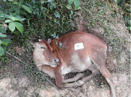 Ông Trần Hữu Vân (trú tại thôn Trại Tuần, xã Hương Vĩnh, huyện Hương Khê, Hà Tĩnh) cho biết, gia đình ông có 15 con, ngày 29/1 thả cả đàn vào bìa rừng, tối hôm đó đàn bò vẫn về chuồng đầy đủ. Đến sáng 30/1, chỉ có 7 con trong đàn trở về chuồng ban đầu gia đình nghĩ đàn bò vẫn ngủ lại trong rừng. Đến ngày 3/2, ông Vân bàng hoàng chứng kiến cảnh 8 con bò của mình nằm chết la liệt ở khu vực Khe Lạnh cách nhà gần 1km.