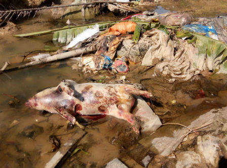 Người dân thôn Vĩnh Mới, xã Thạch Tiến (huyện Thạch Hà, Hà Tĩnh) phản ánh từ dịp ra tết đến nay họ rất hoang mang và bức xúc trước tình trạng hàng chục con lợn to nhỏ đủ loại không rõ nguồn gốc trôi dạt theo kênh N1 về địa phương. Điều đáng nói là tất cả đều đang trong thời kỳ phân hủy, bốc mùi hôi thối nồng nặc gây ô nhiễm môi trường.