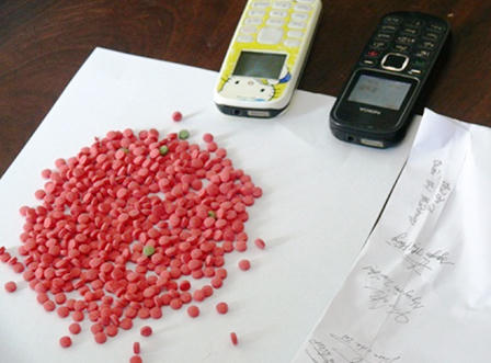 Lực lượng chức năng khám xét, phát hiện và thu giữ 2 gói nilông màu trắng chứa ma túy tổng hợp (ma túy đá), 3 triệu đồng tiền mặt, 2 bộ cóng dùng để sử dụng ma túy đá, 1 súng tự chế, 1 dao nhọn, 1 điện thoại di động và một số tang vật liên quan. Đối tượng khai nhận mua số ma túy trên từ TP.Vinh - Nghệ An về sử dụng và bán cho các con nghiện kiếm lời để tiếp tục mua ma túy sử dụng.