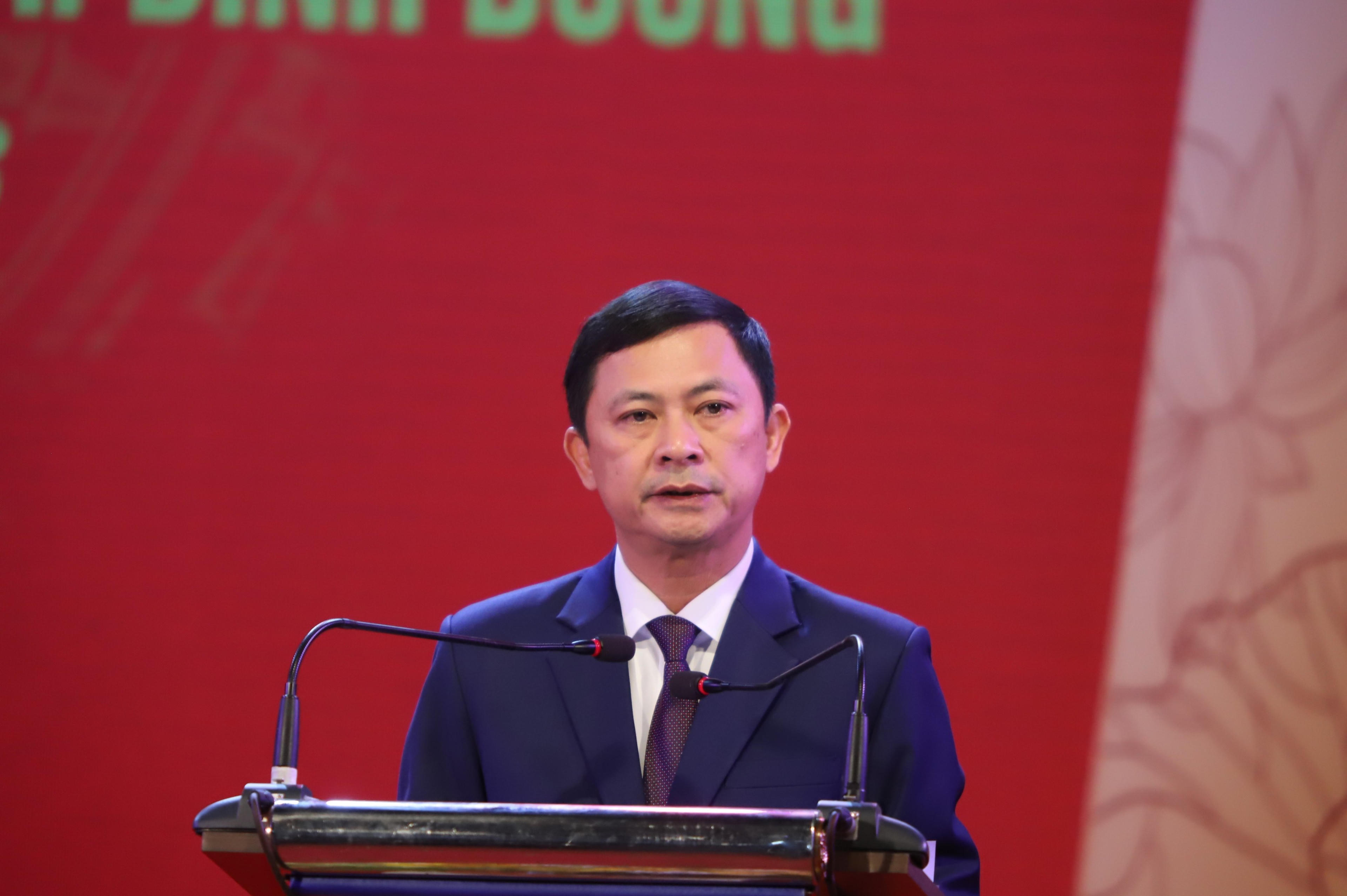 Phó Chủ tịch UBND tỉnh Hà Tĩnh- Lê Ngọc Châu trình bày diễn văn tại buổi lễ. |