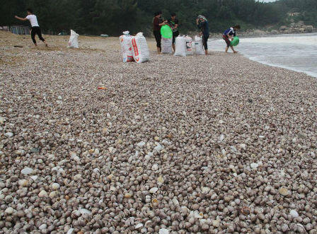 Theo người dân địa phương cho biết, cứ vào tháng 11 âm lịch hàng năm, mỗi khi biển động, sò lông thường bị sóng đánh, trôi dạt vào bờ biển xã Thạch Hải (huyện Thạch Hà, Hà Tĩnh). Năm nay, số lượng sò lượng sò lông dạt vào bờ nhiều hơn hẳn các năm trước, ước tính khoảng vài chục tấn mỗi ngày.