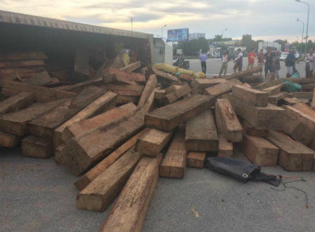 Tài xế Nhâm cho biết số gỗ trên được vận chuyển từ Nam-Bắc, đến địa điểm trên thì chiếc xe bị gặp nạn. Sau khi vụ viêc xảy ra, anh Nhâm đã gọi xe khác đến để kịp thời bốc số gỗ trên tránh ùn tắc giao thông.