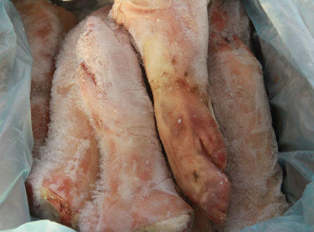 Theo đó, ngày 25/4, sau khi nhận được tin báo của quần chúng nhân dân, các đơn vị trên đã tiến hành kiểm tra kho đông lạnh của HTX Hà Hương (khối phố Văn Thịnh – Phường Văn Yên, TP Hà Tĩnh). Qua đó, phát hiện 1.180 kg hàng hóa sản phẩm động vật bao gồm: chân giò lợn, cá basa phi lê, cá trứng, cánh gà và nội tạng của gà đã quá hạn sử dụng, ôi thiu đã biến đổi màu sắc, mùi vị.