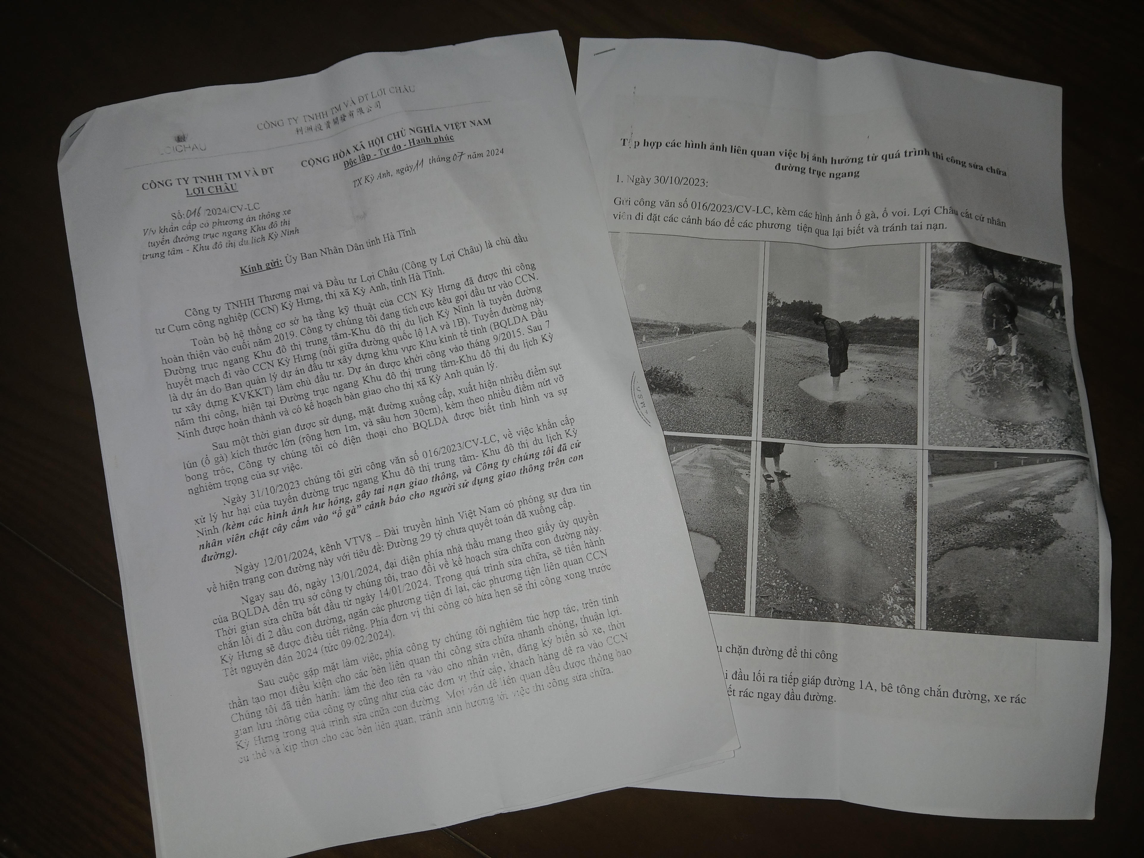 “Công ty chúng tôi đã 2 lần gửi công văn đến chủ đầu tư, UBND TX Kỳ Anh, UBND tỉnh Hà Tĩnh về việc nhanh chóng xử lý đường hư hỏng và rất nhiều lần liên lạc qua điện thoại với các cơ quan chức năng nhưng chỉ nhận được câu trả lời vẫn đang xử lý, đang chờ. Với hiện trạng này không biết phải chờ đến bao giờ” - bà Liêu Sụt Hàn nói.