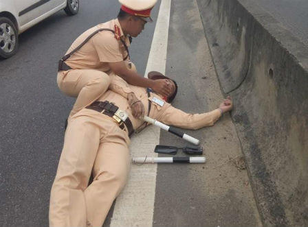Về tình hình sức khỏe của thượng úy Đức, Phòng CSGT Hà Tĩnh cho hay sau khi được cấp cứu tại bệnh viện Đa khoa Hồng Lĩnh thì được chuyển ra Bệnh viện Đa khoa tỉnh Nghệ An trong tình trạng gãy chân và chấn thương ở đầu… Do tụ máu não, đa chấn thương nên đã chuyển gấp ra Bệnh viện Việt Đức (Hà Nội) ngay trong đêm.